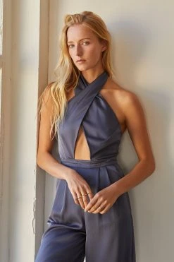 Buxom Couture Satin Tie Shoulder Jumpsuit Jumpsuits & Rompers Black