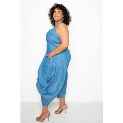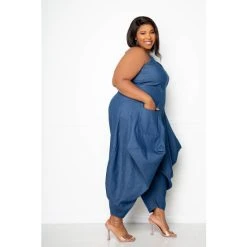 Buxom Couture Halter Neck Denim Jumpsuit Jumpsuits & Rompers