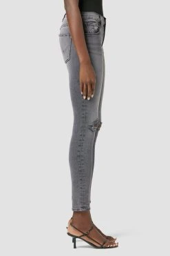 Hudson Jeans Nico Mid-Rise Super Skinny Ankle Jean – Stone Grey Destructed