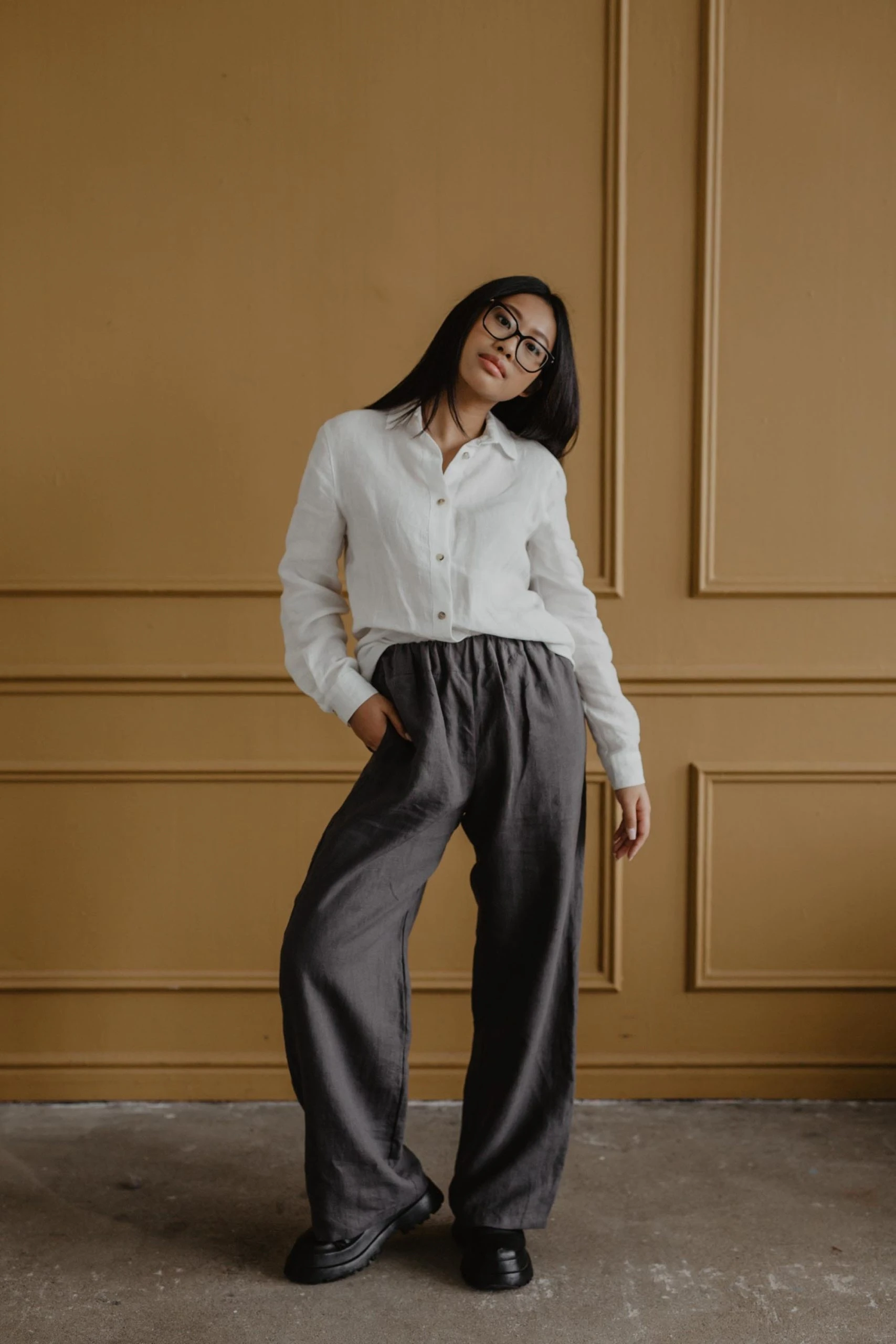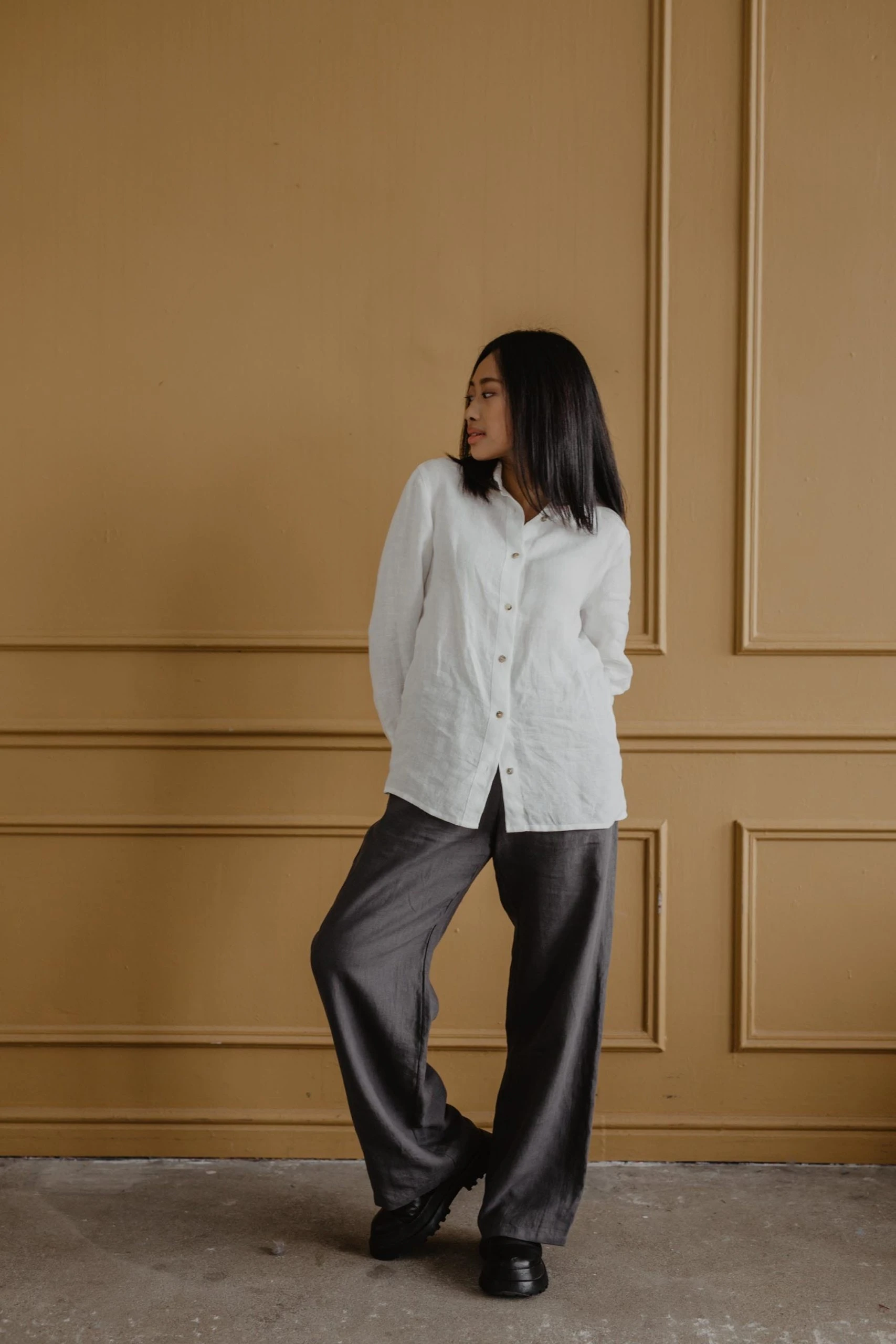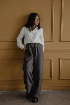 Long and loose linen Pants Oulu. With an elastic waist band and pockets. Perfect for every occasion – you can wear it to work, a date or a night out!.