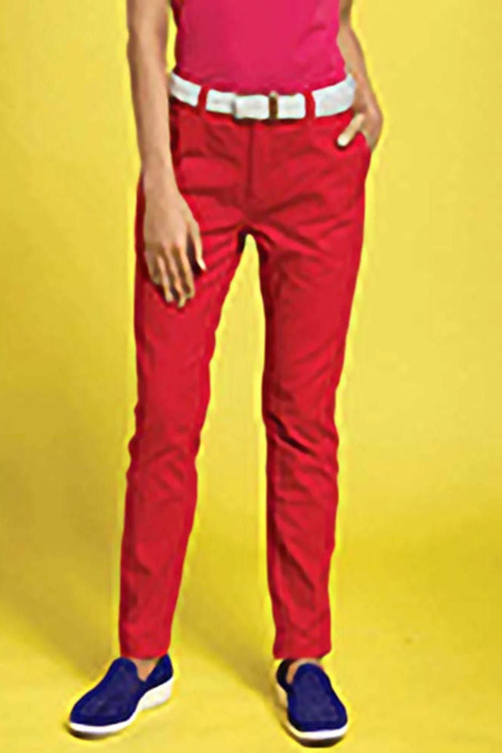 – Womens classic fit chinos in a soft fabric finish.- Zip fly with button fastening at waist.- Belt loops.- Two pockets to the side and two non-functional back pockets for styling.- Sizing: XS: 4, S: 6, M: 8, L: 10, XL: 12, 2XL: 14..- Gender: Women