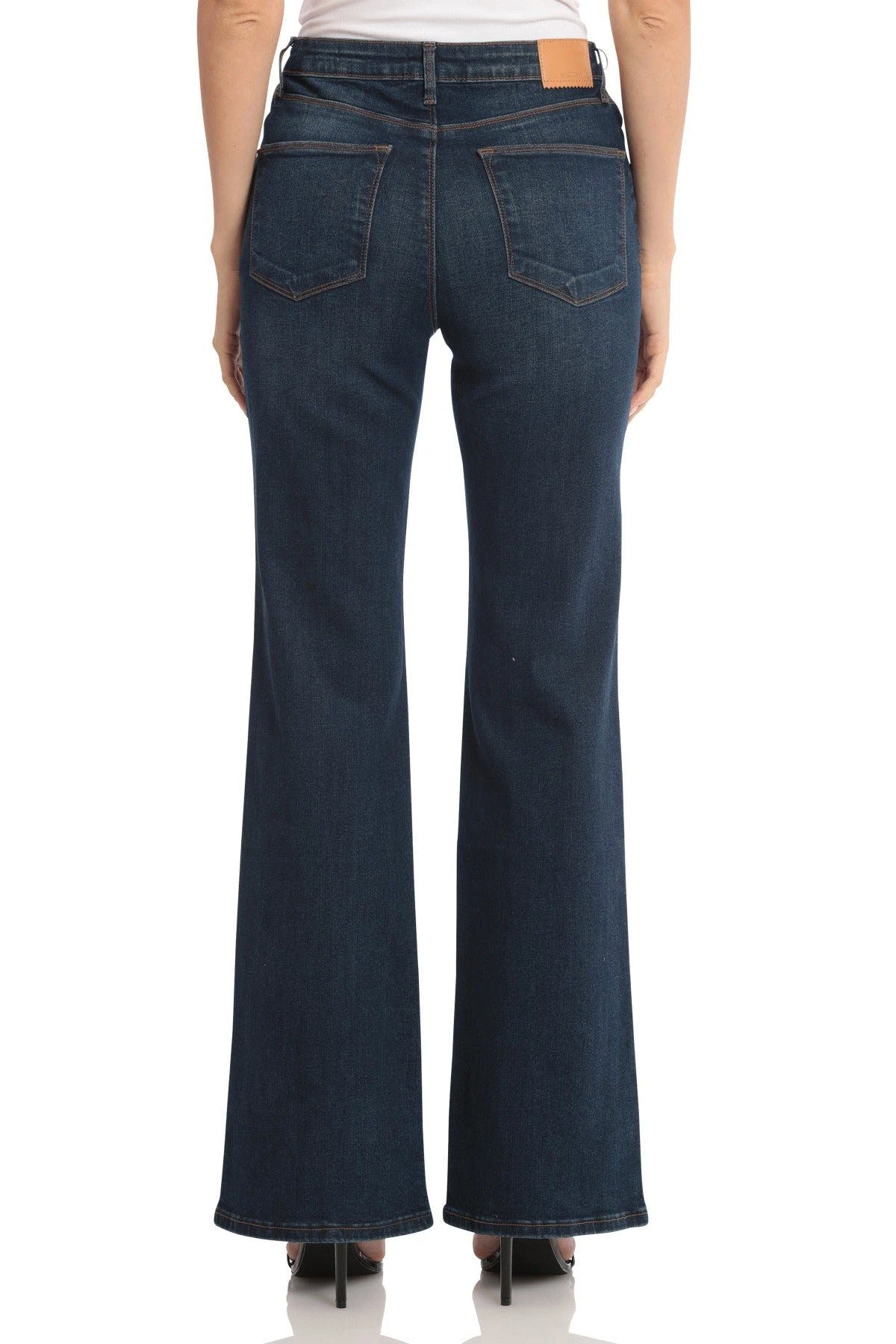 Meet this it girl flare style. Hugging you in all the right places, it’s perfect to pair with a boot or heel. This pair of wear-everywhere jeans has a flattering fit and ’70s retro vibe.