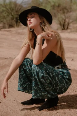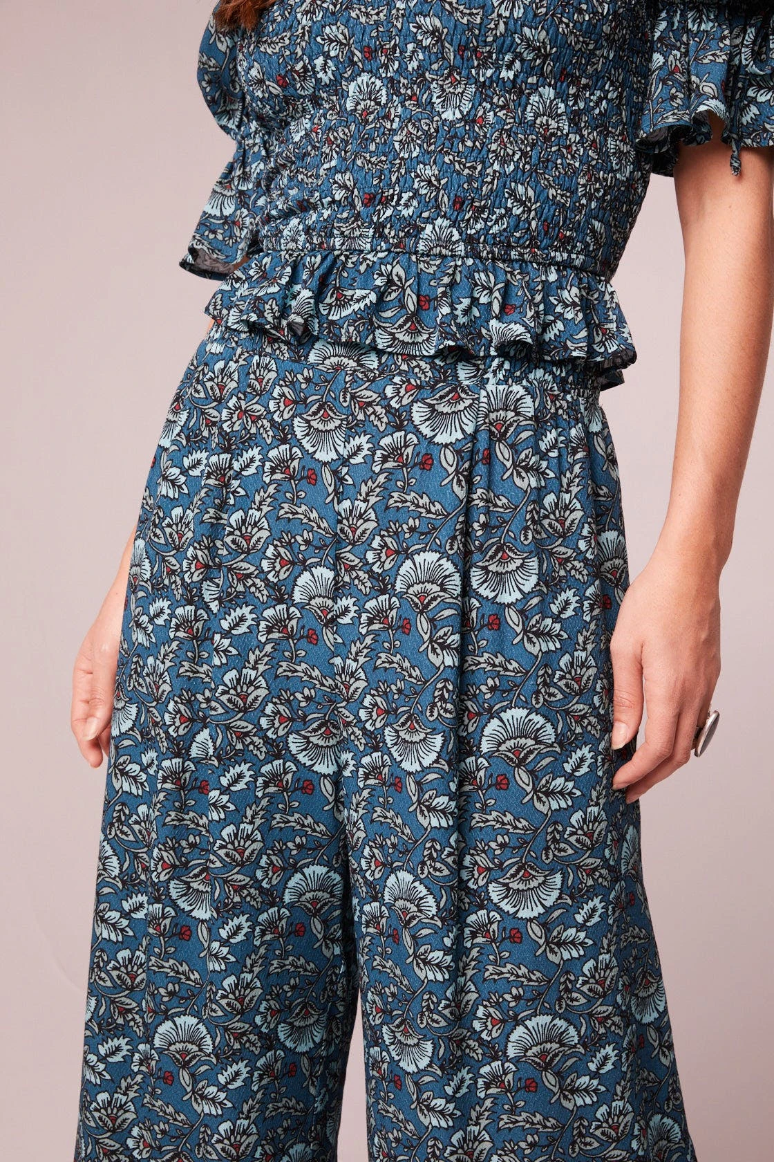 Wide legs cinch in a high waist with the sweetly patterned Elise pants.