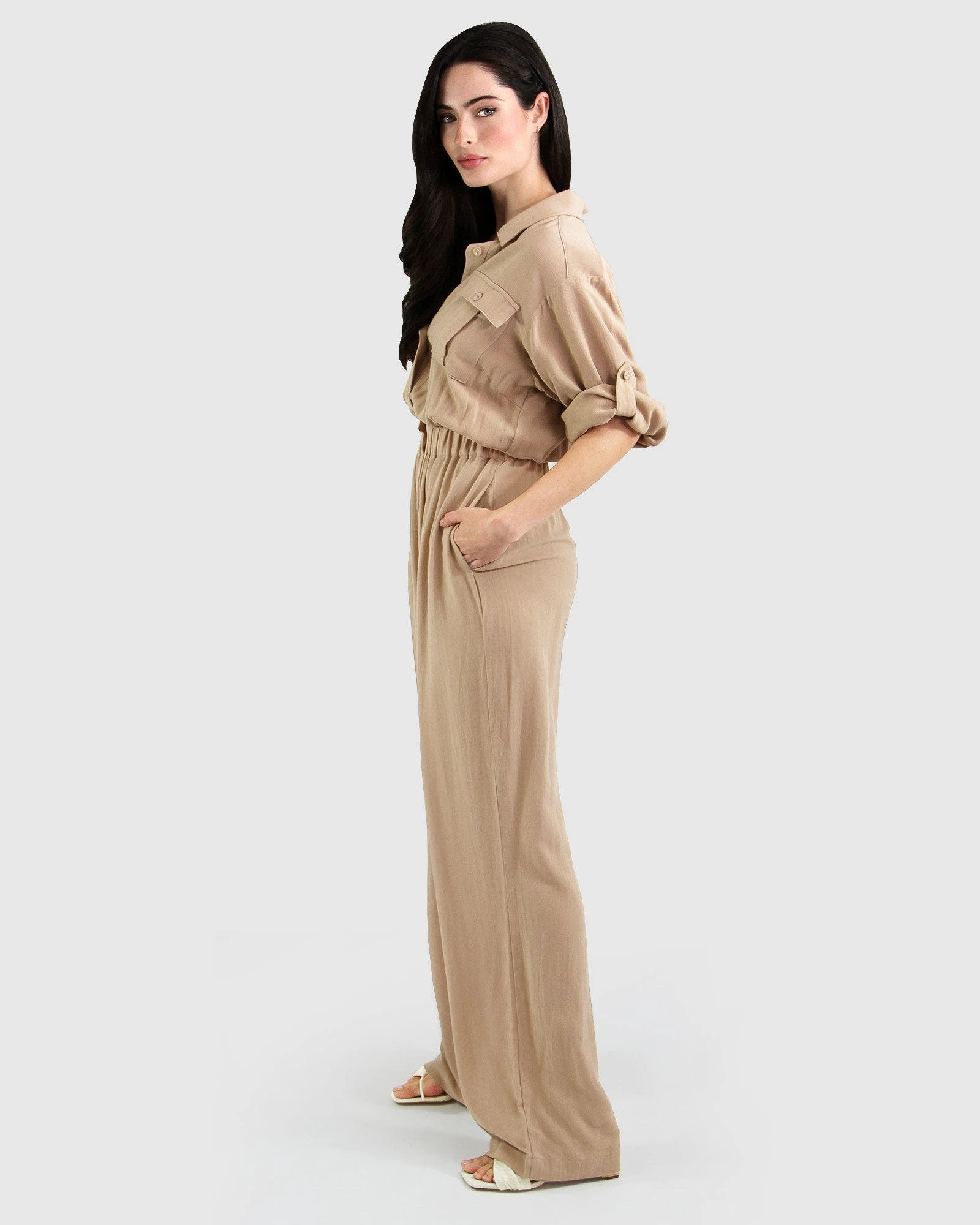 Utilitarian and feminine, the art of escape jumpsuit is a timeless piece that can be effortlessly worn from day to night. The soft draping linen-blend fabric mean ultimate comfort! Style with a flats or dress it up with a statement heel.