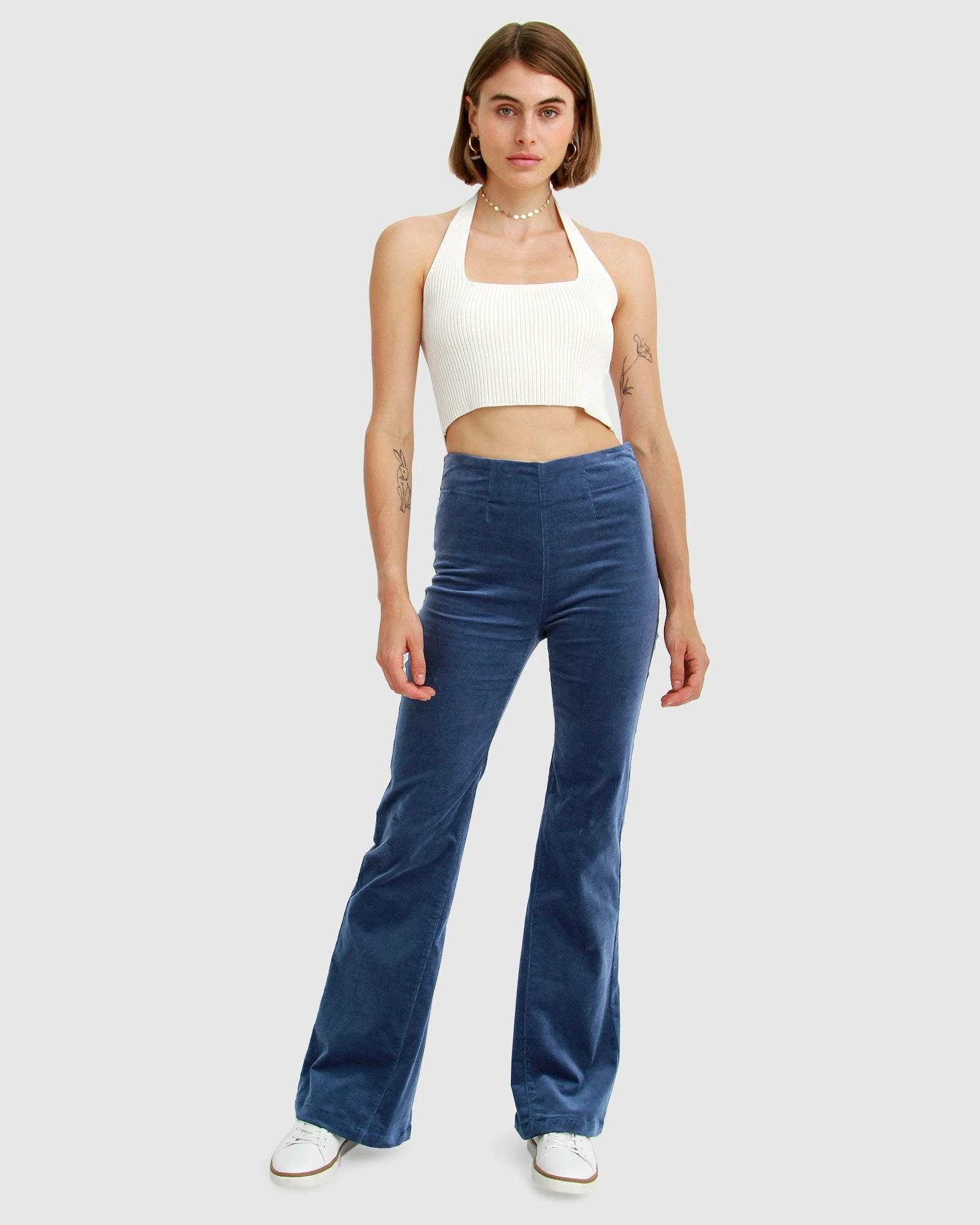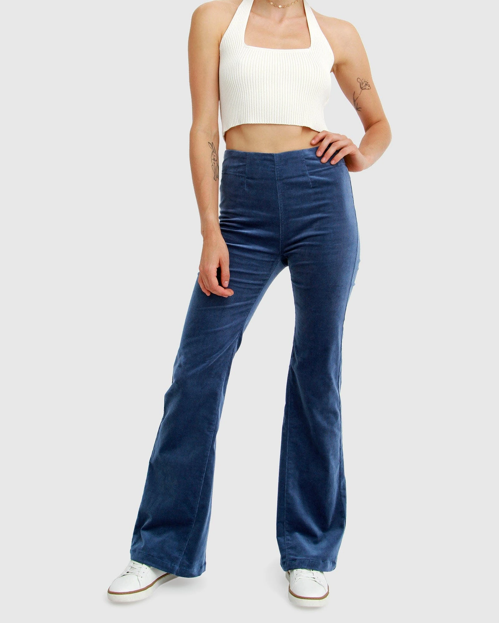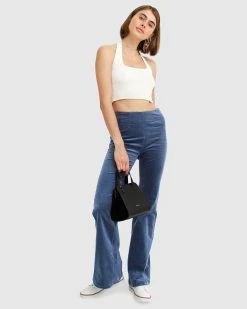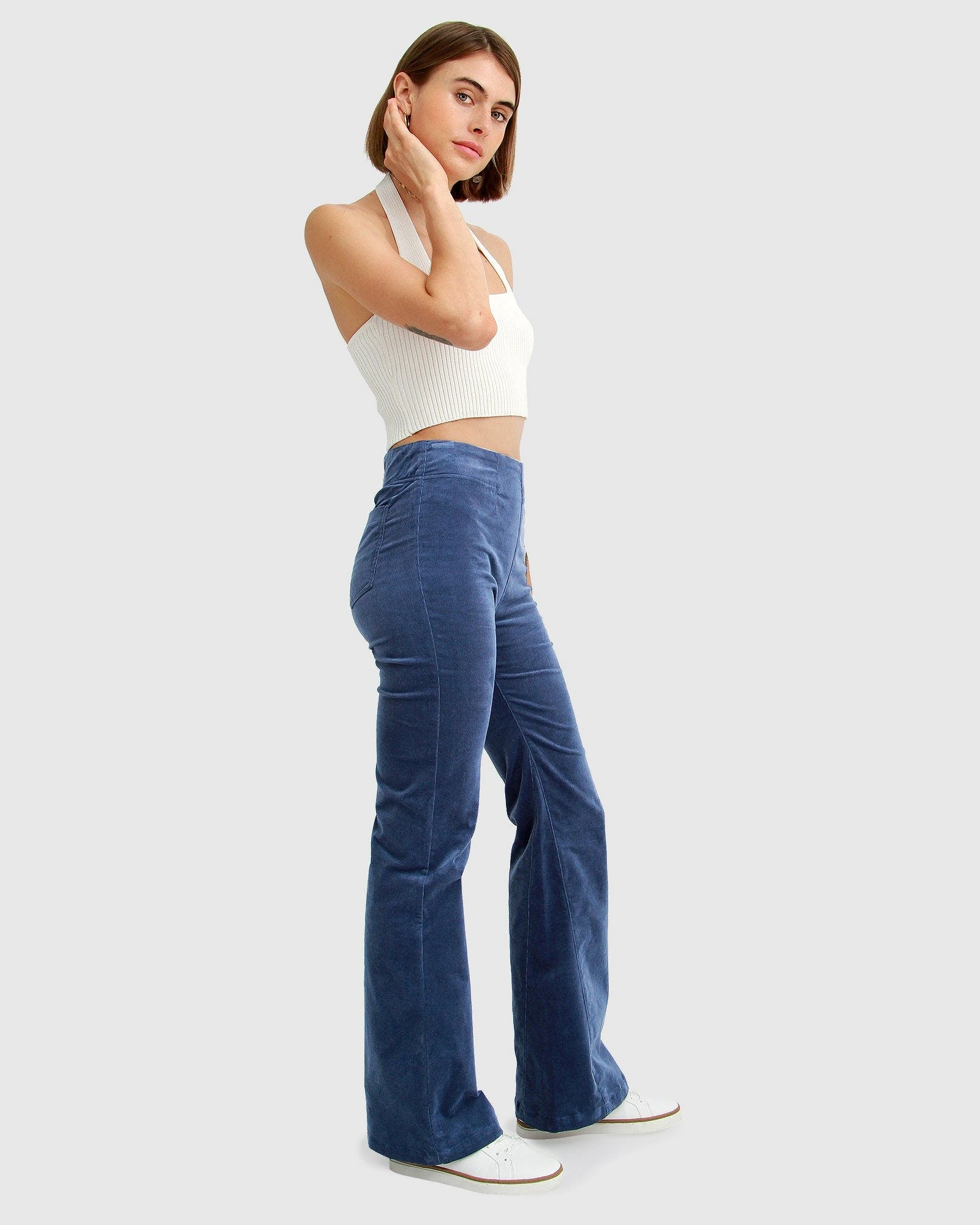 Explore this retro look with the Studio Corduroy Flared Pants crafted from premium stretch denim to perfectly hug your figure. Flaunt that small waist with its high-rise and clean line front.