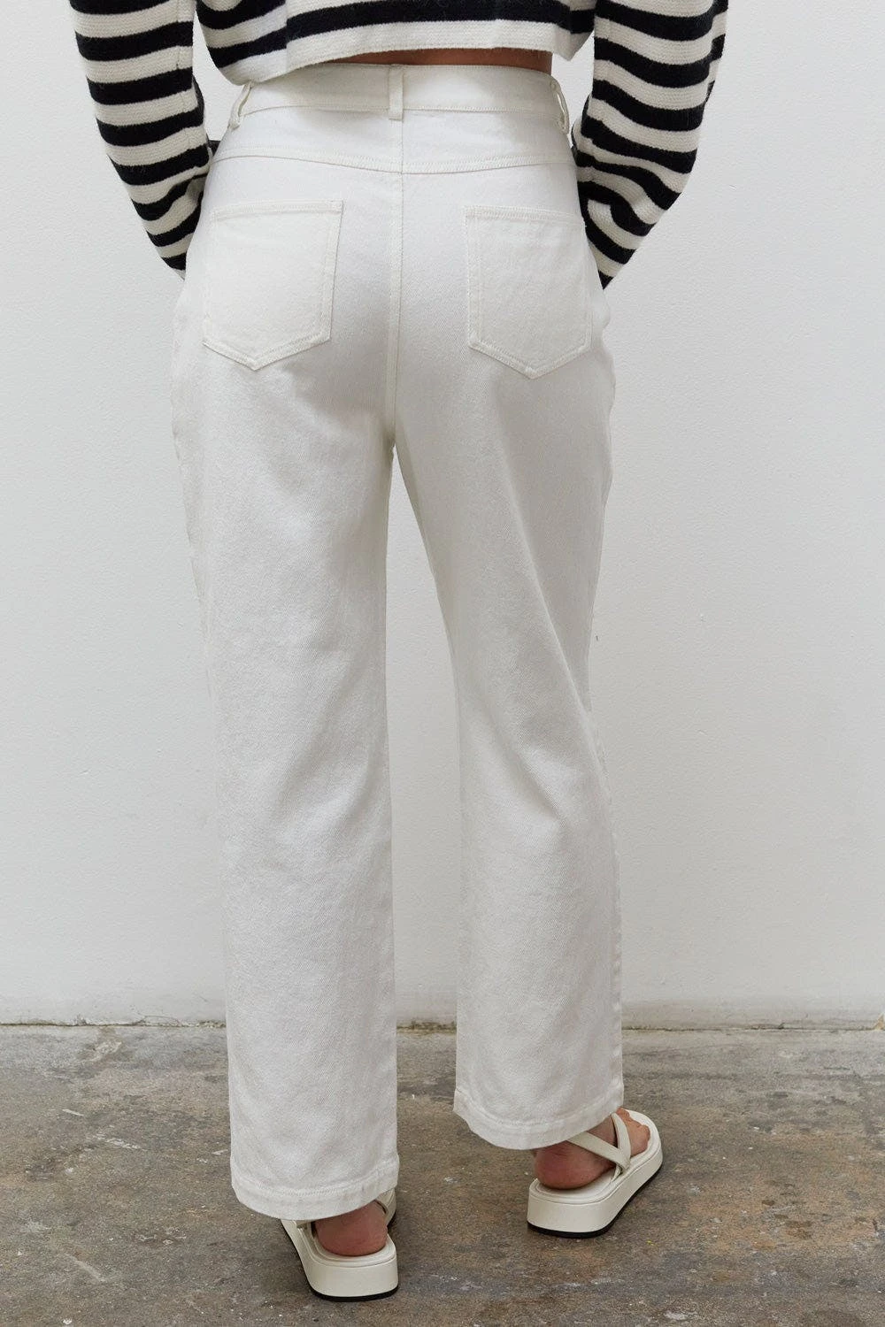 A chic update to your conventional jeans, our Leon Criss Cross Jeans feature asymmetric front waistband and straight-leg silhouette.