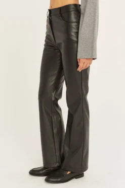 Majorie Vegan Leather Pants feature high waist, button and zipper front closure with side and rear patch pockets. Cut in slim fit with full length.