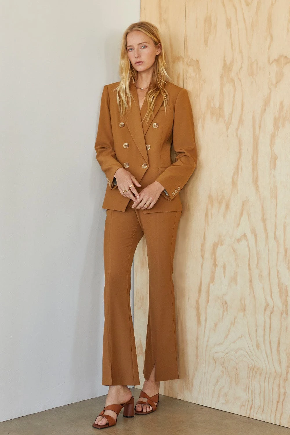 – Noelle Front Slit Flare Pants- High waisted- Front hook and eye closure with hidden zipper- Flare pants- Front seam detail- Front slit- Side pockets