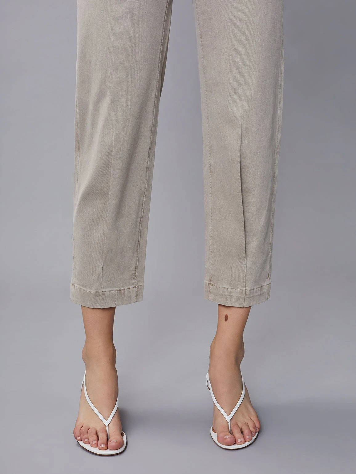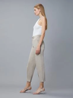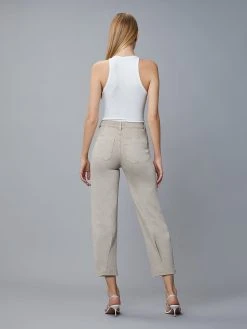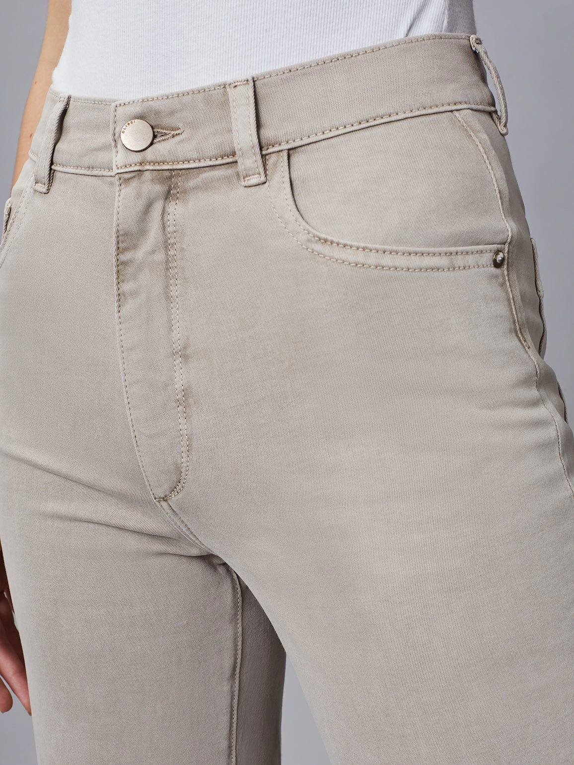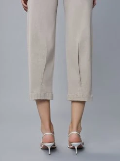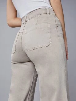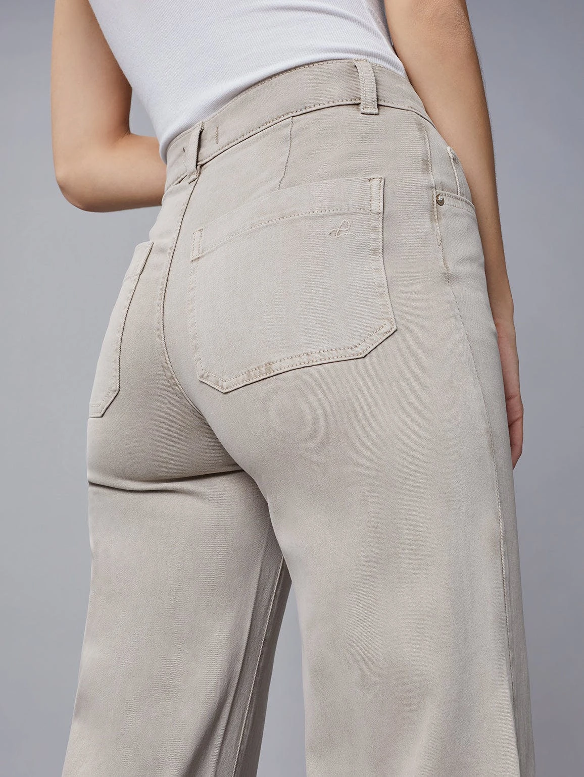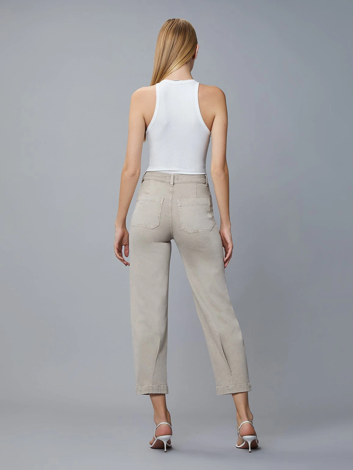 Hepburn is a vintage high-rise that is fitted through the waist and seat, tapering outward from the thigh for a wide leg that hits above the ankle.