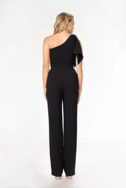 The Tiffany jumpsuit is classy with a touch of flair thanks to the asymmetrical one-shoulder neckline. The top portion hugs your figure while the wide legs create a flattering finish. The black color looks great on any body type and the jumpsuit also has pockets.