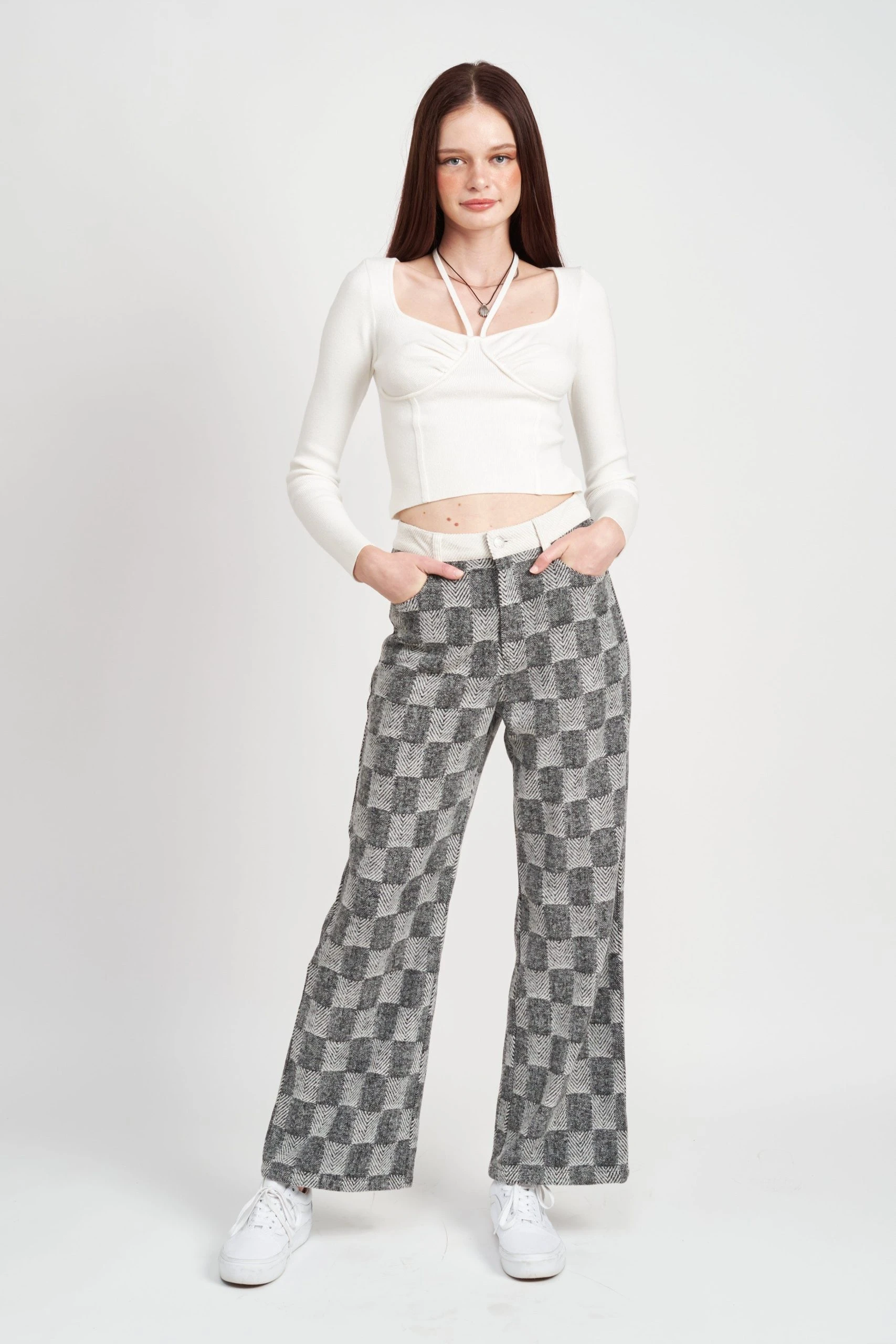 – Plaid pattern wide pants- Matching set with Ora jacket