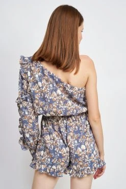 – Floral print asymmetrical romper- Hand wash- Model is 5’9 and wears size small