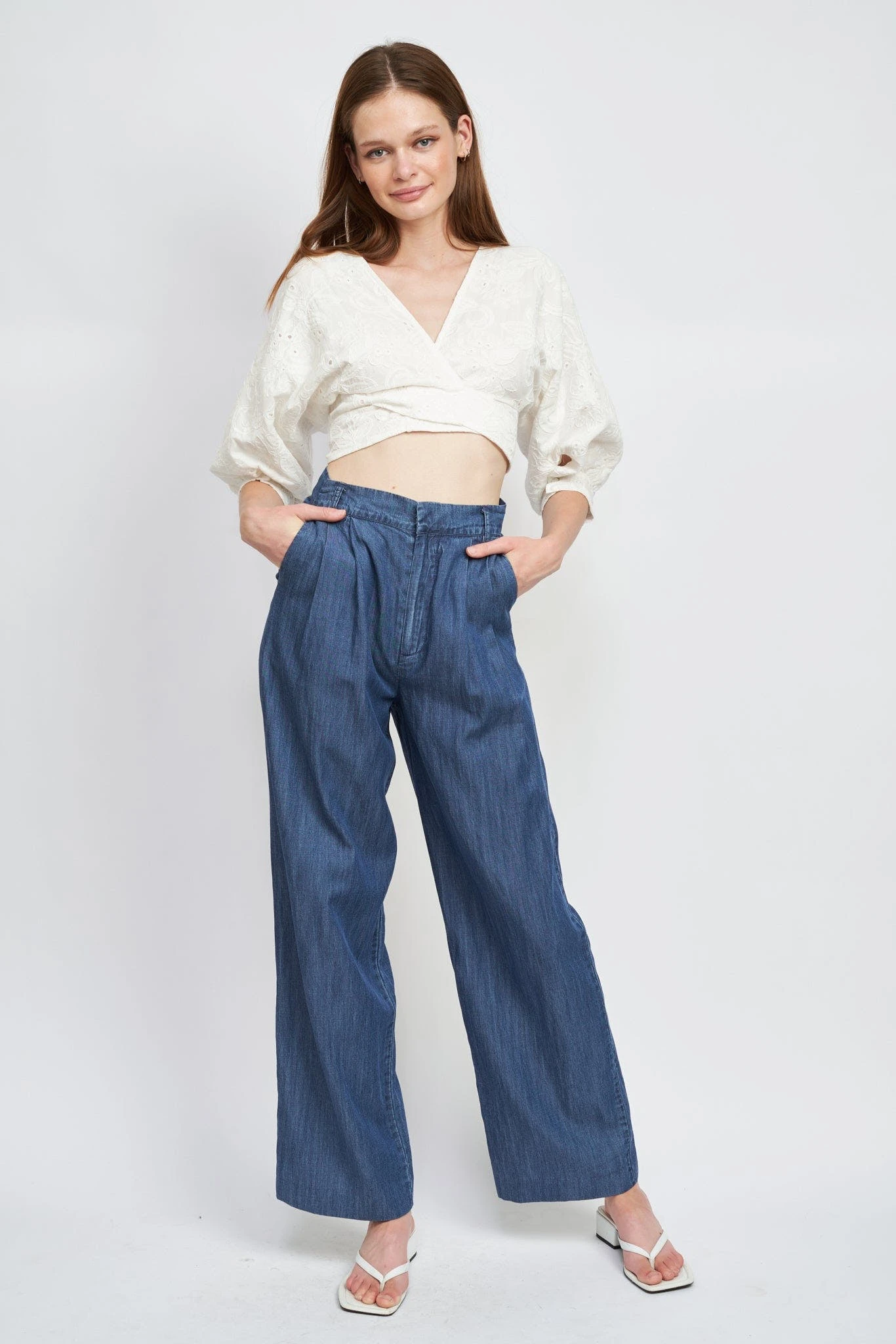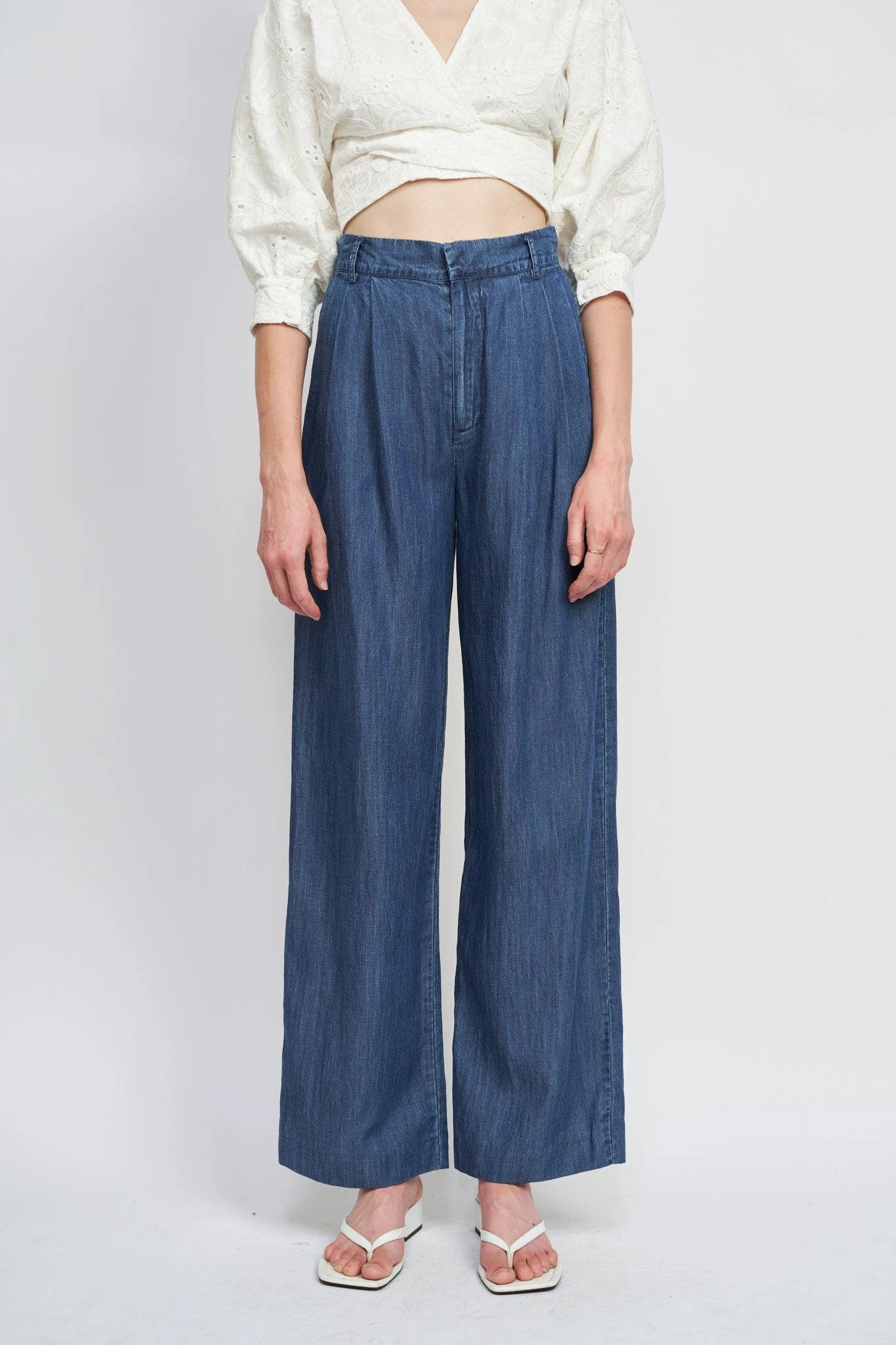 – High waist wide leg trousers- Hand wash- Model is 5’9 and wears size small