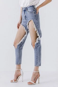 High Waist Destroyed Jeans are made from high-quality, soft, and comfortable fabric that retains its durability even after several washes. This product is the perfect essential for vacations and outdoor appearance. It features pocket and zipper closure, with a fitted design that enhances your shape.