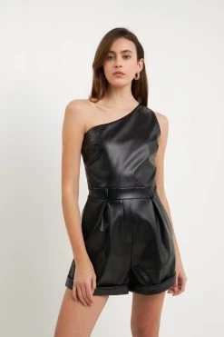 This romper is sure to turn heads. With its sexy one shoulder design and front zipper, this romper is perfect for a night out on the town. The waist band ensures a comfortable and flattering fit. Wear it with your favorite heels and you’re ready to party the night away.