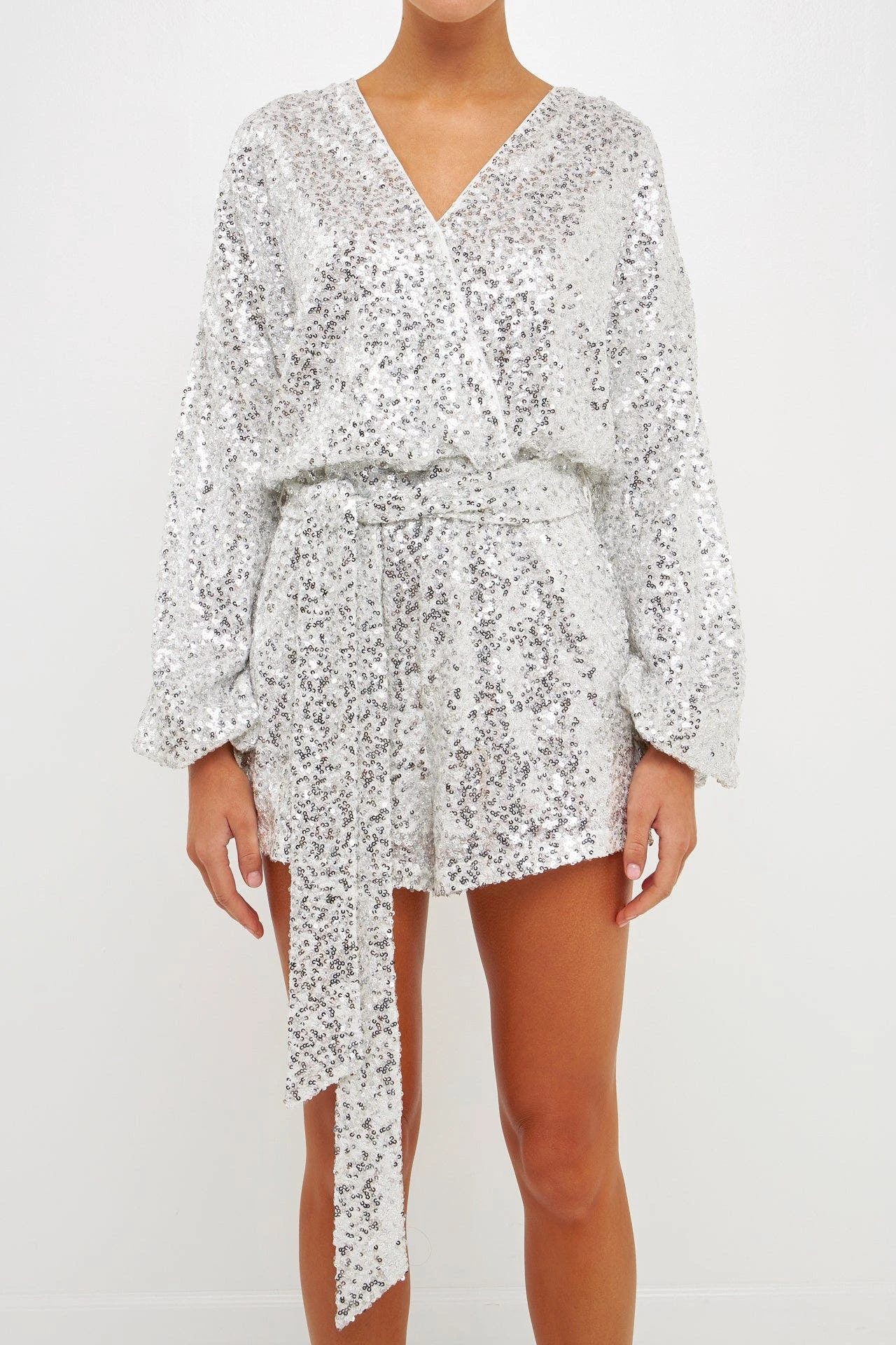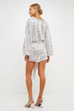 Shine from every angle in this sequin wrapped romper. This piece is perfect for showing off your confident side. With a loose fitting style and v-neckline, it’s ideal for a night out on the town. Pair with your favourite heels and statement necklace for a look that will light up the room.