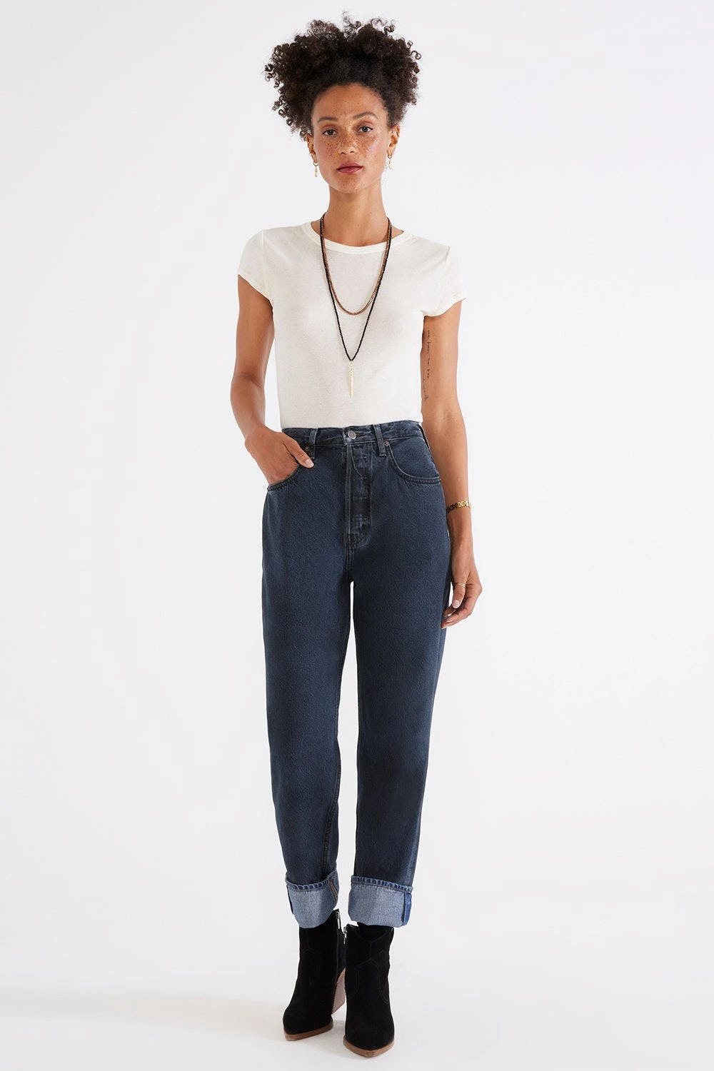 A 90’s throwback, Bryce sits comfortably at the waist and eases through the leg, finishing with black lava treatment, created from a plant-based overdye on the bluest of washes.