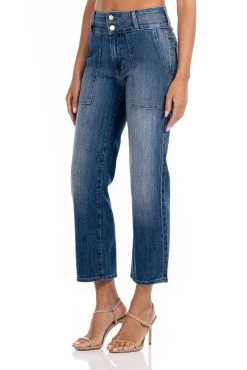 A utility fashion cargo with all the details. Double gold button waist band and cute oversized painter patch pockets add character. The saddle fabric is lightweight and drapes with your body.