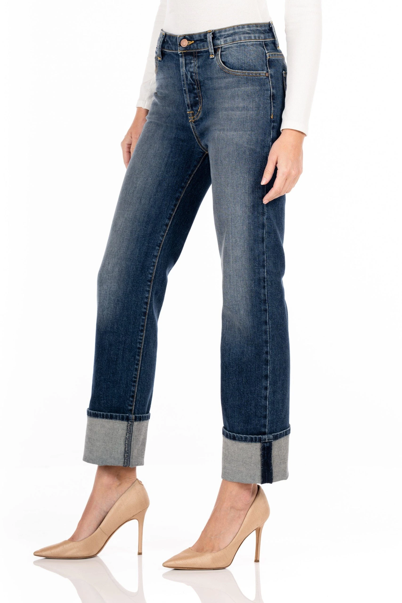 A retro high full straight leg that throws back to a simpler time. The button fly and this vintage blue wash, with a rolled cuff make you feel so authentic. Made with a Candiani Nimes denim that has a soft vintage feel. Italian Candiani denim is BCI, RINA, and Confidence in Textiles certified. The finest responsibly sourced cotton, fibers and dyes.