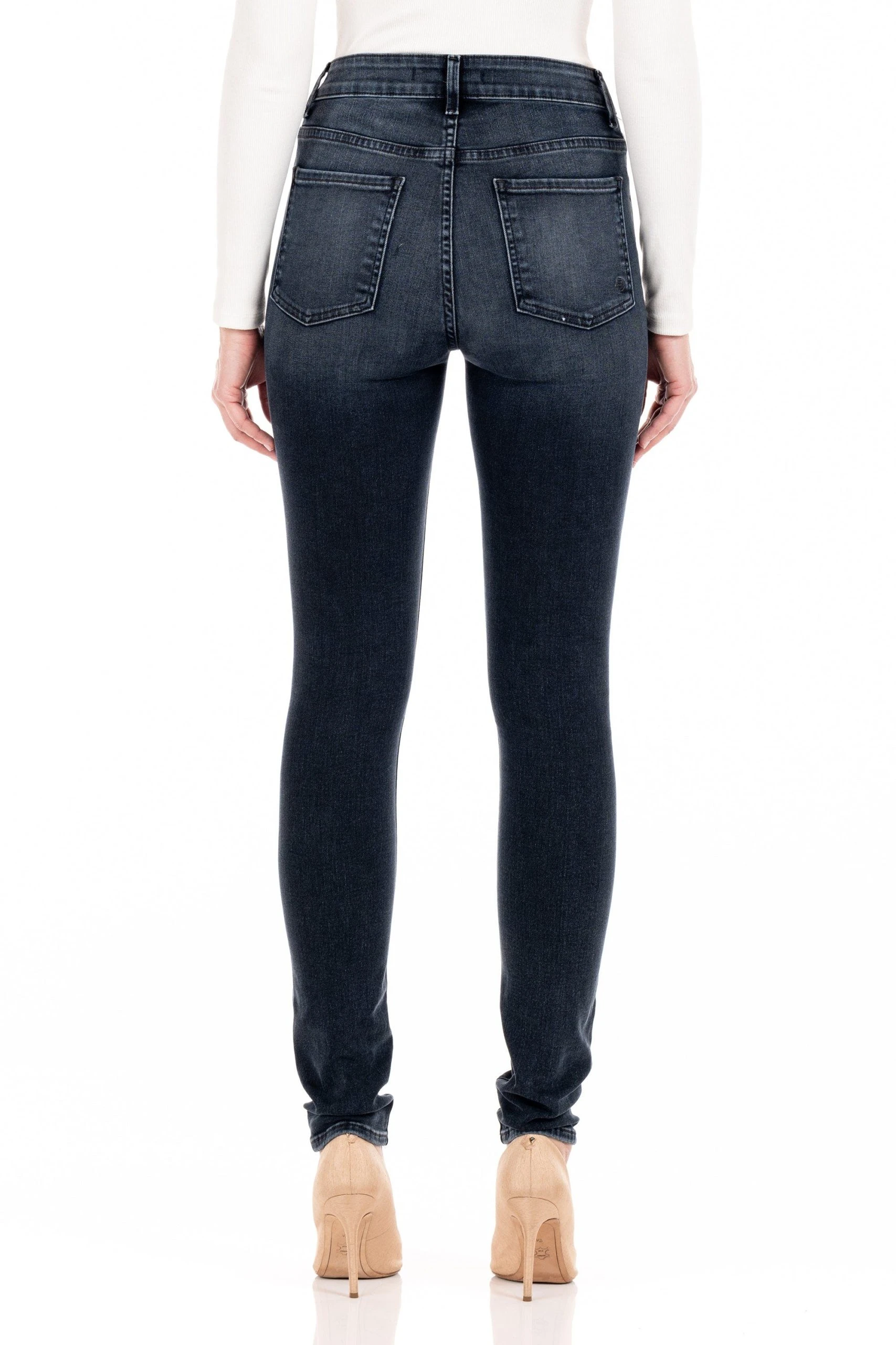 High-rise skinny in a rich dark wash that has subtle tonal stitching.Made from excel fabric, this jean is going to hug all the right places but feel stretchy and smooth against you body. Perfect pocket placement enhances your best assets.