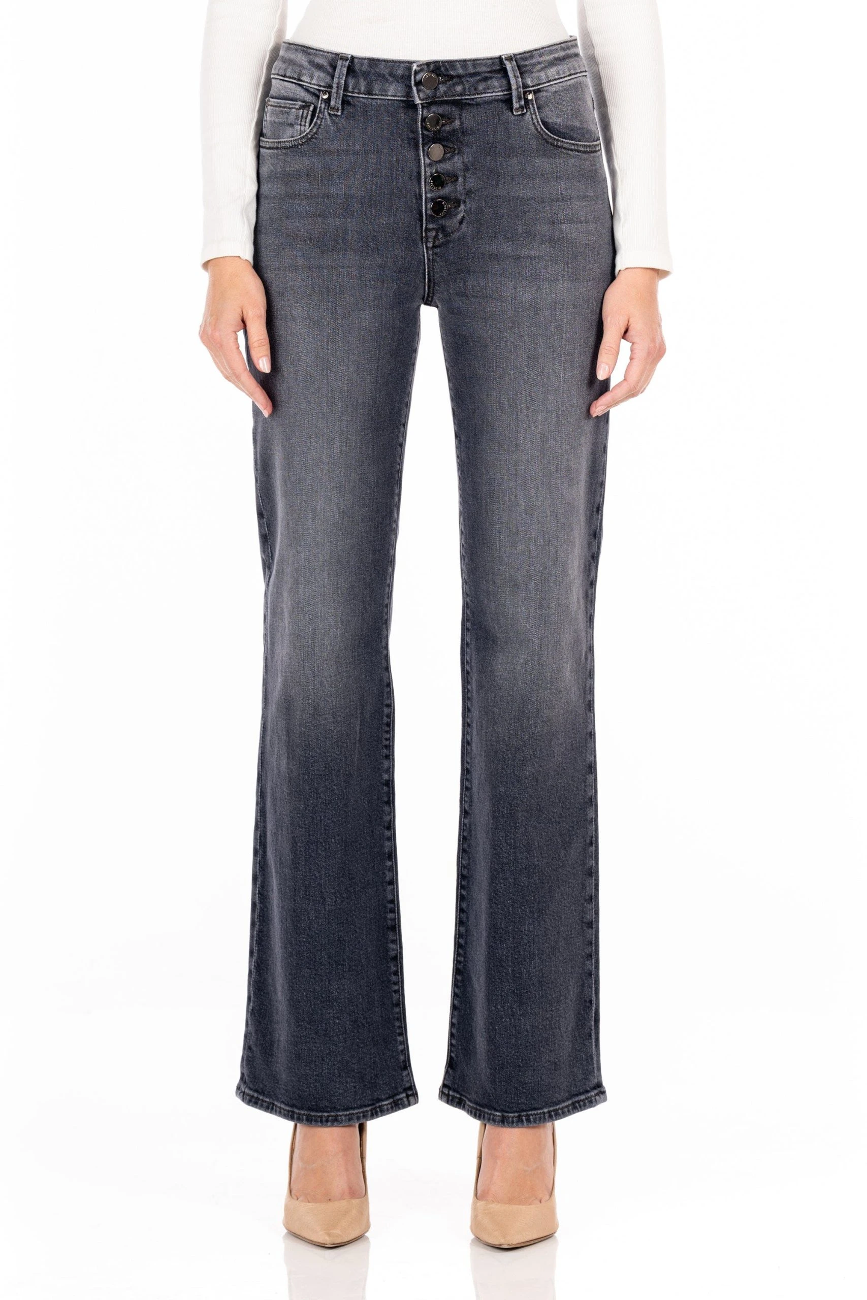 Irish eyes are smiling with this Katie in Dublin. Popular high rise flare fit are pared back to a fun exposed button fly. Made with Italian Candiani denim that is BCI, RINA and confidence in Textiles certified. The finest responsibly sourced cotton, fibers and dyes.