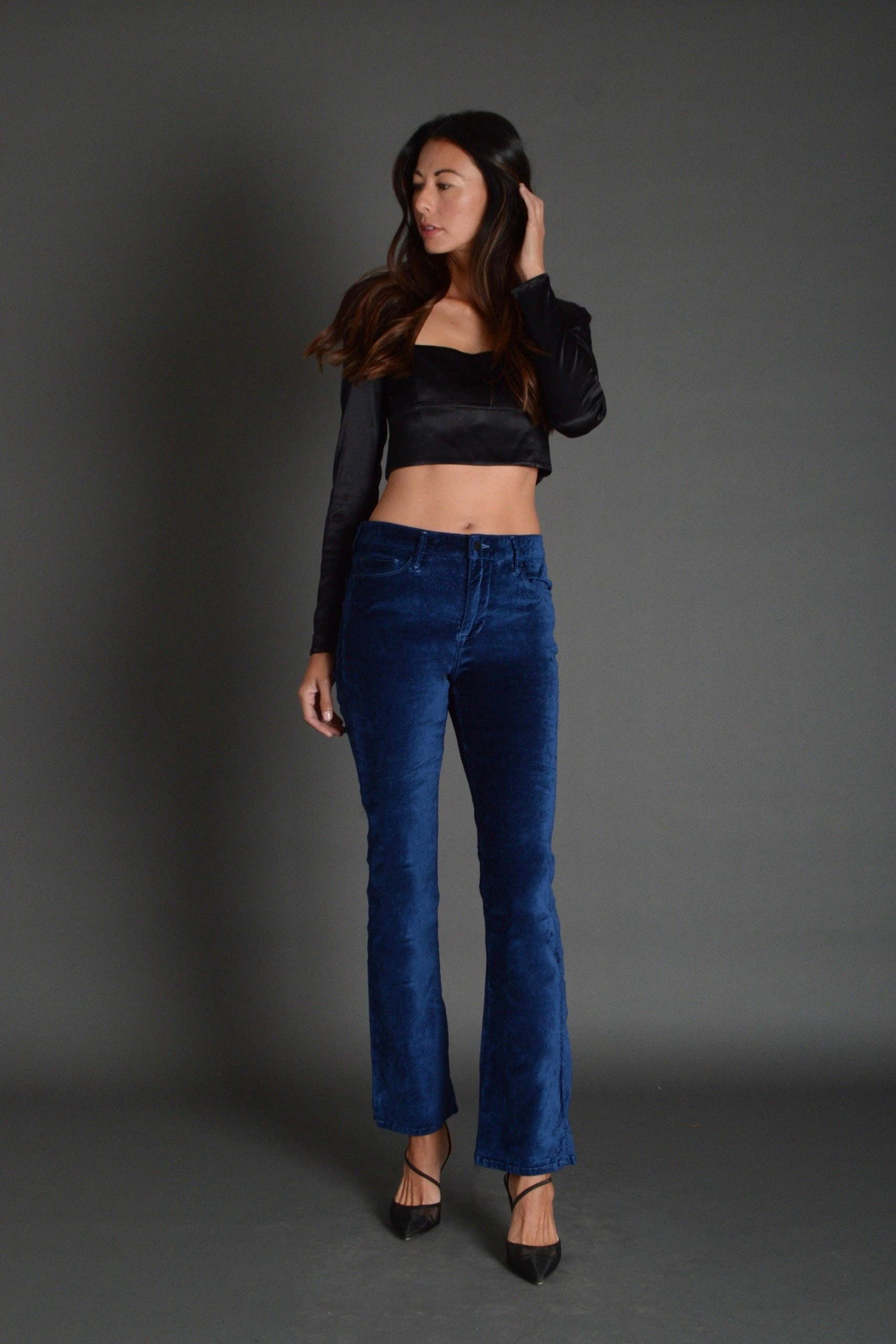 A timeless jean in a gorgeous royal blue velveteen finish.