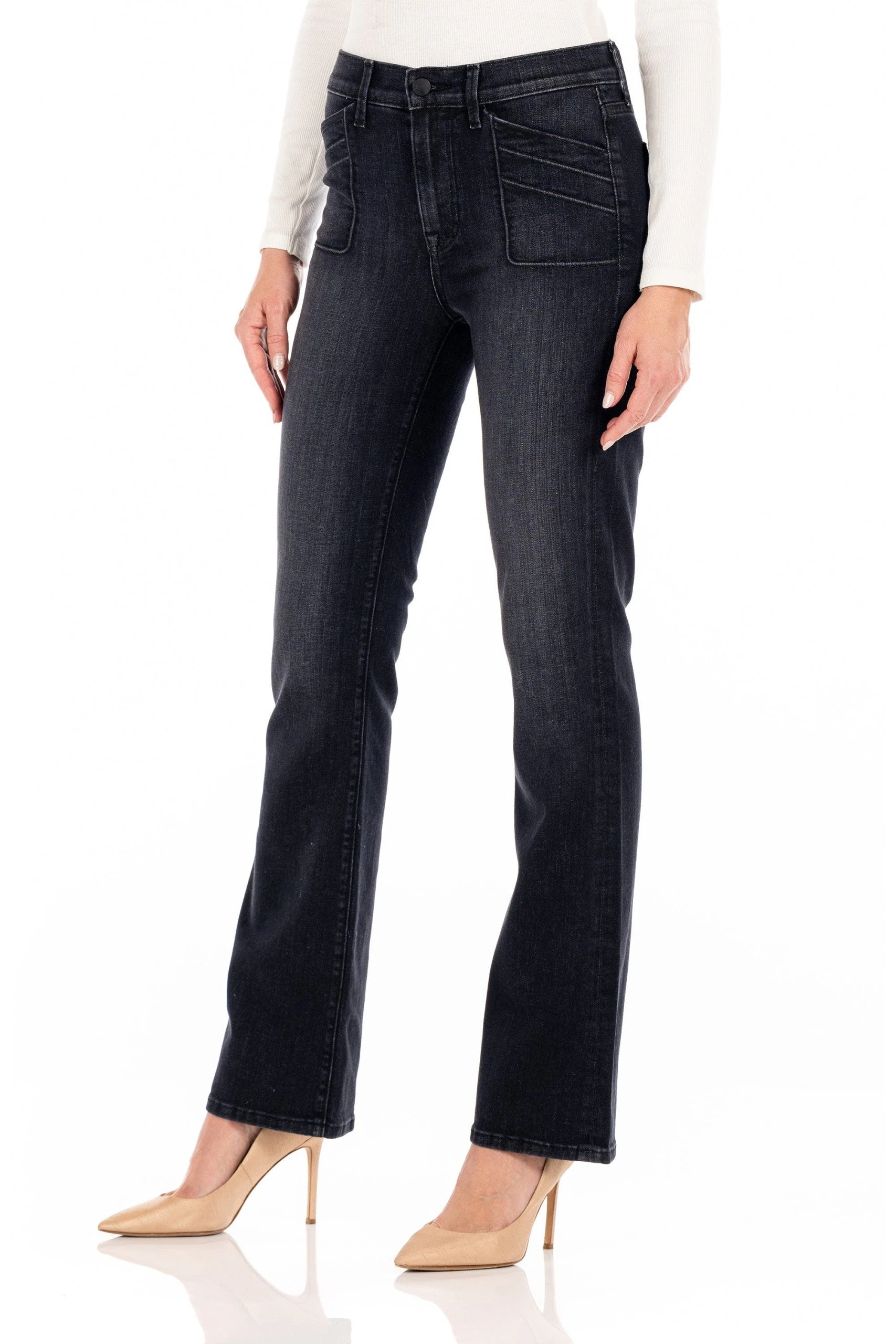 Sahara is a high boot cut fit and are obsessed with this Pompeii gray denim. Retro patch pockets with vertical piping adds flare at the hip to match that boot cut at the bottom. Made with Manhattan a super soft comfort stretch denim that is Italian Candiani. This mill is BCI, RINA, and Confidence in Textiles certified. The finest responsibly sourced cotton, fibers and dyes.