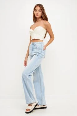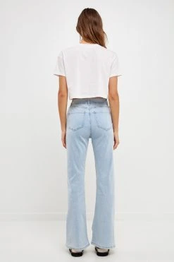 These flare jeans will give you that 70s vibe. Bring back the flared jeans of the 70s with this modern take on the classic look. With a mid rise and finished cuffs, these jeans are perfect for showing off your favorite shoes. Style these jeans with a tucked-in blouse or tank top for a put-together look.
