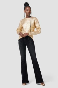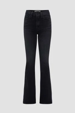 Streamlined and flattering, Barbara High-Rise Bootcut Jean in deep Night Sky is cut for a slim, contoured fit with an elevated waistline and a gently flared leg with slit inseams. Made from premium stretch denim.