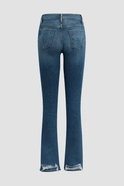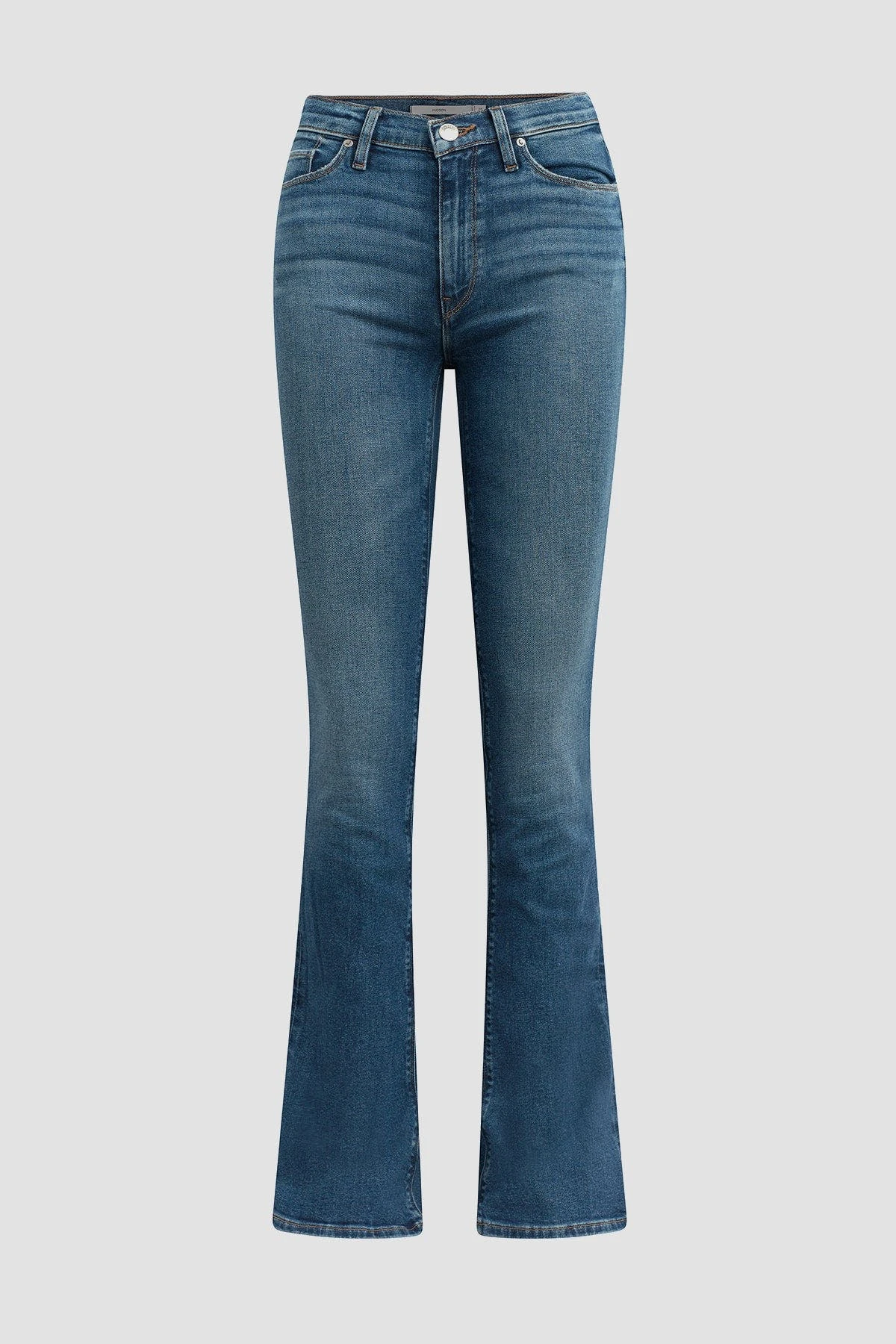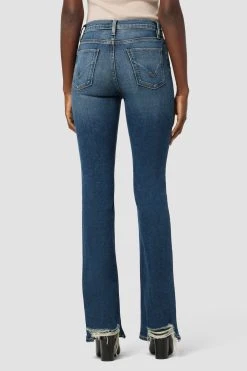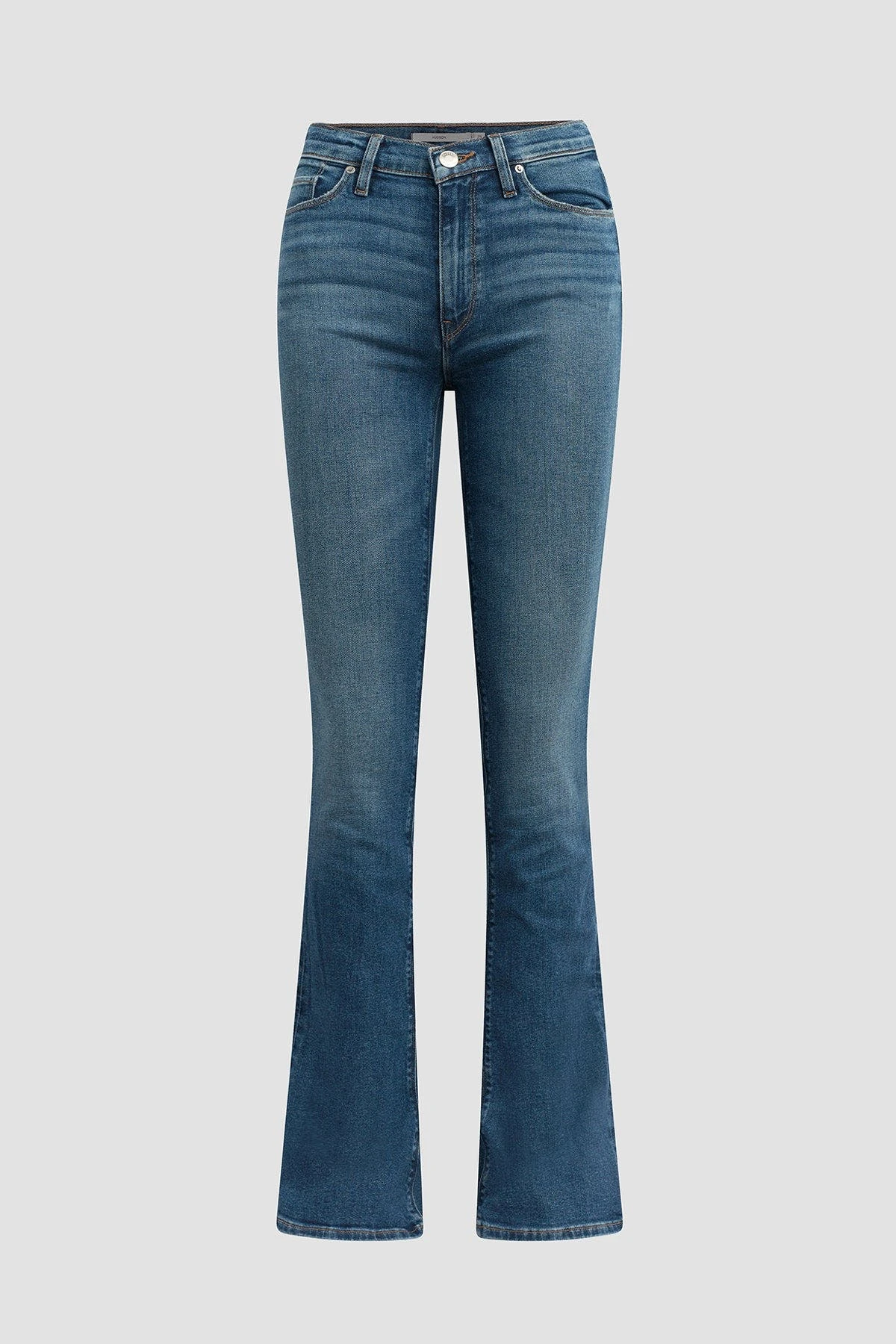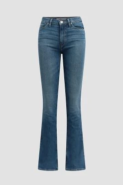 Streamlined and flattering, Barbara High-Rise Bootcut Jean in medium indigo Universal is cut for a slim, contoured fit with an elevated waistline and a gently flared leg. Made from premium super stretch denim, it’s finished with gentle destruction and classic five-pocket details.