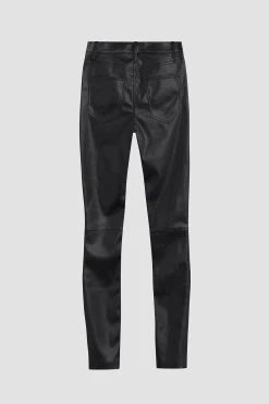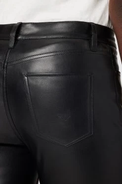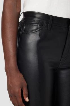 Our Barbara High-Rise Straight Ankle Jean with Spliced Hem in Black Beauty is cut for a slim-straight fit from premium stretch fabric. Features classic five-pocket details, cropped slit hems, and a glossy finish.