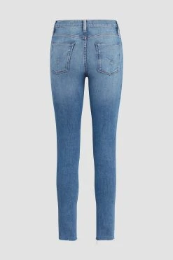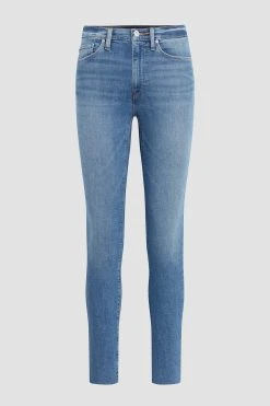 Our Barbara High-Rise Super Skinny Ankle Jean in medium indigo Brighton is cut for a slim, contoured fit with an elevated waistline and a frayed hem that’s cropped at the ankle. Made from premium super stretch denim designed to smooth, sculpt, and hold its shape, it’s your new go-to.