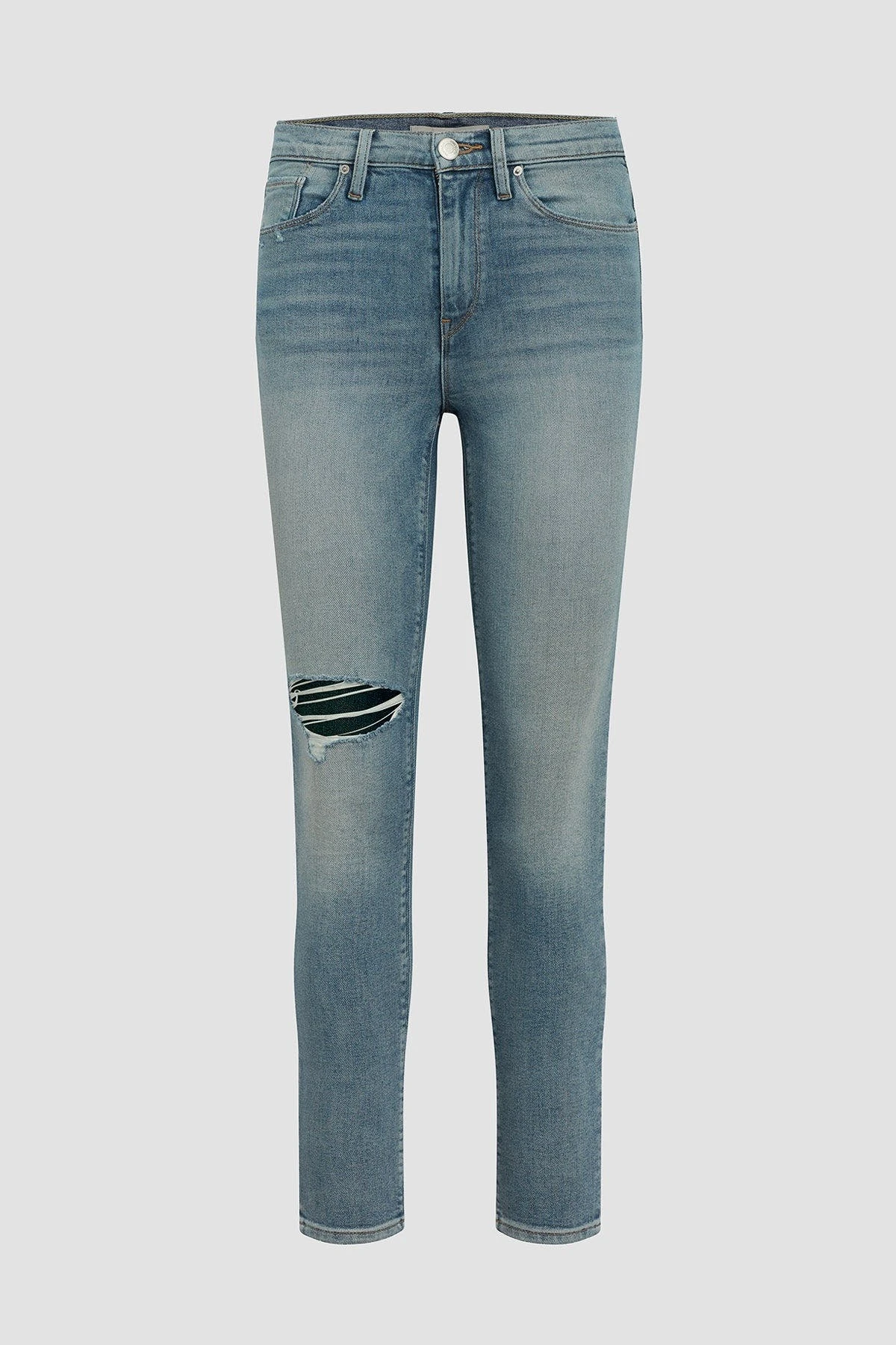 This Barbara High-Rise Super Skinny Ankle Jean in the Love is a slim, contoured fit with a high, holds-you-in waistline. It’s finished with vintage-feel destruction and sewn with faux front pockets for a smooth silhouette.