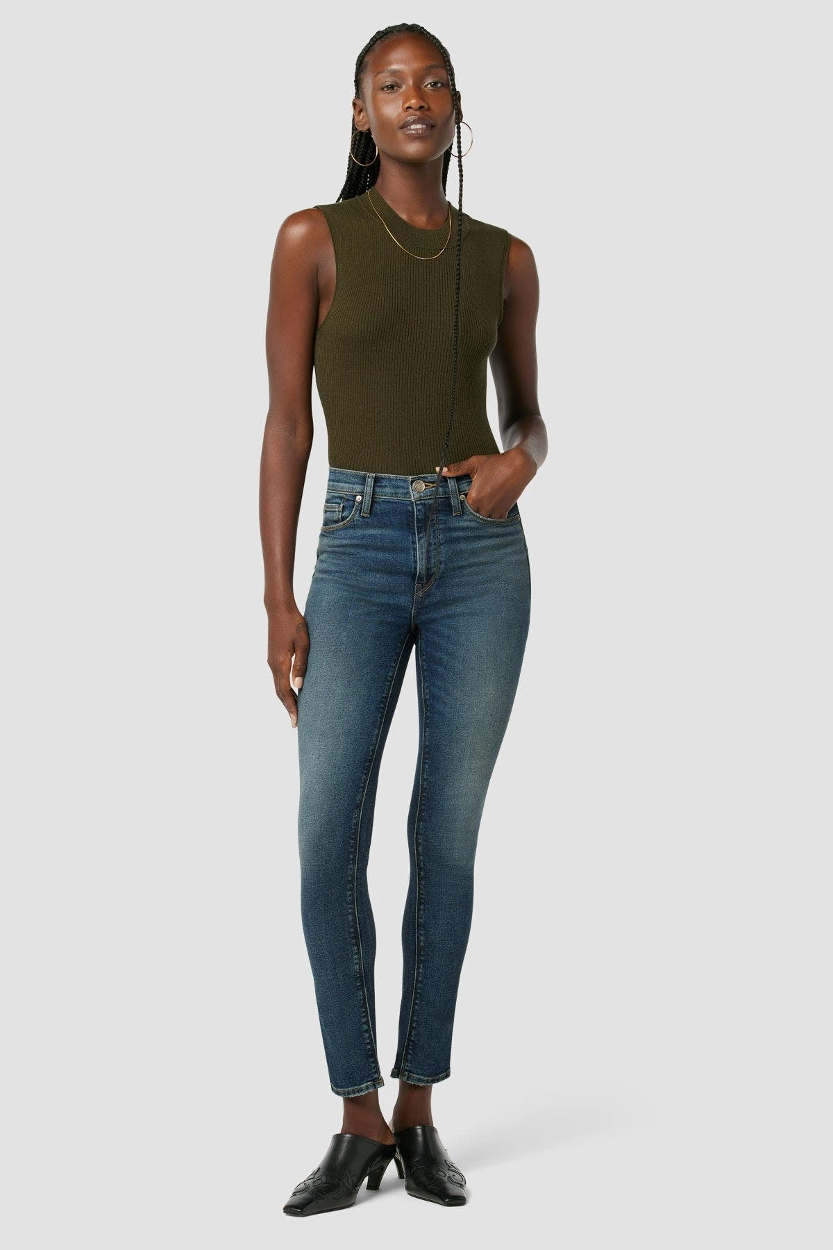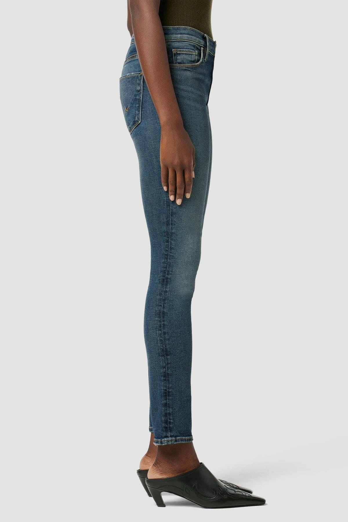 Barbara High-Rise Super Skinny Jean in Eons features a slim, contoured fit, an elevated waistline, and a clean finished hem. Made from soft, super stretch denim designed to hold its shape with extended wear, it’s finished with classic five-pocket details.