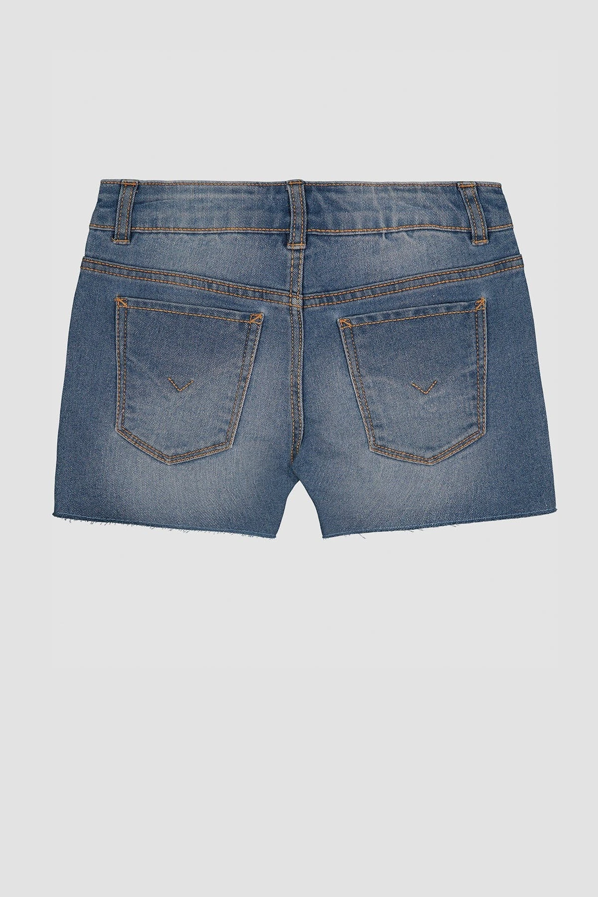 Our cut off side vent short, sizes 7-16, in medium indigo true blue is a new warm-weather favorite. Features classic five-pocket details and frayed hems.