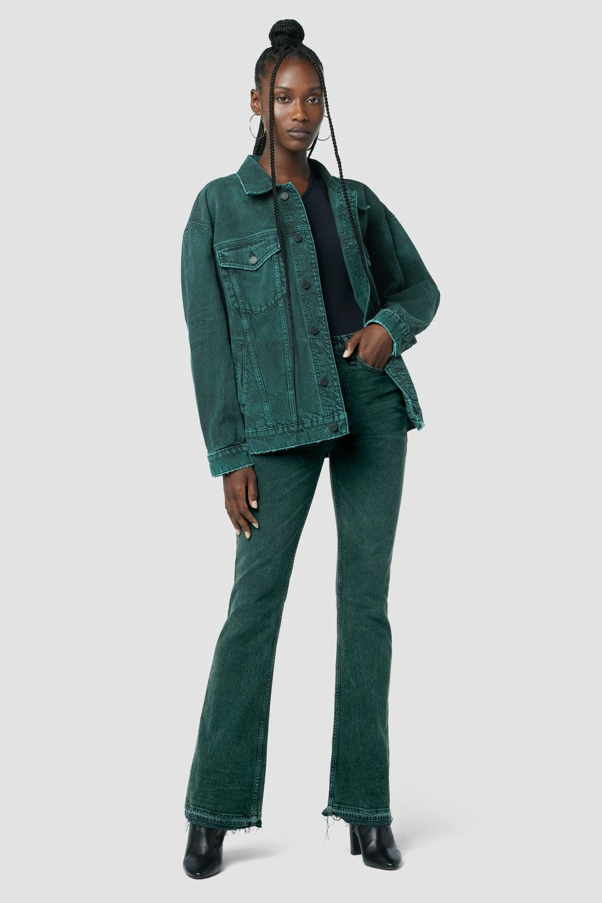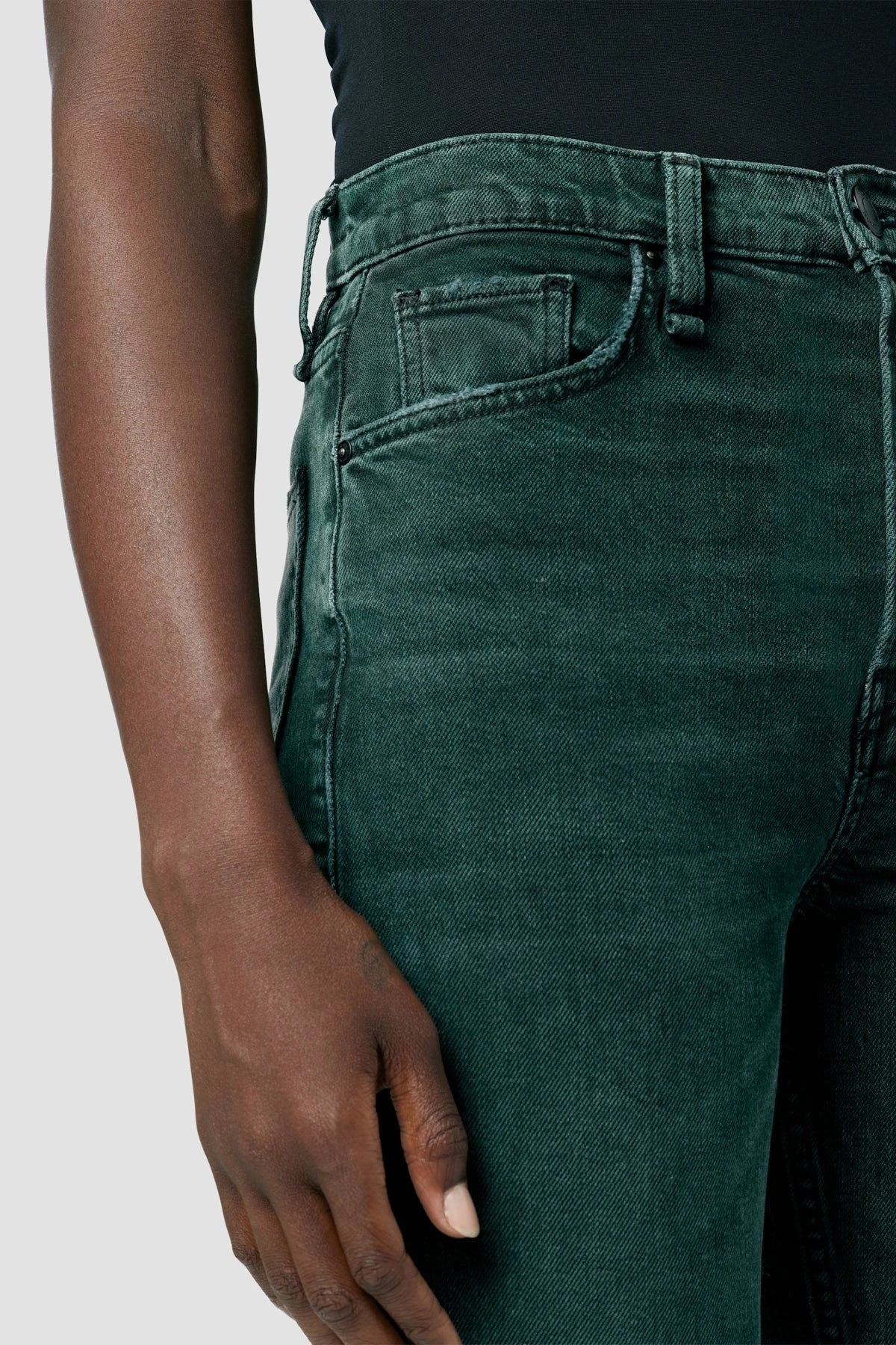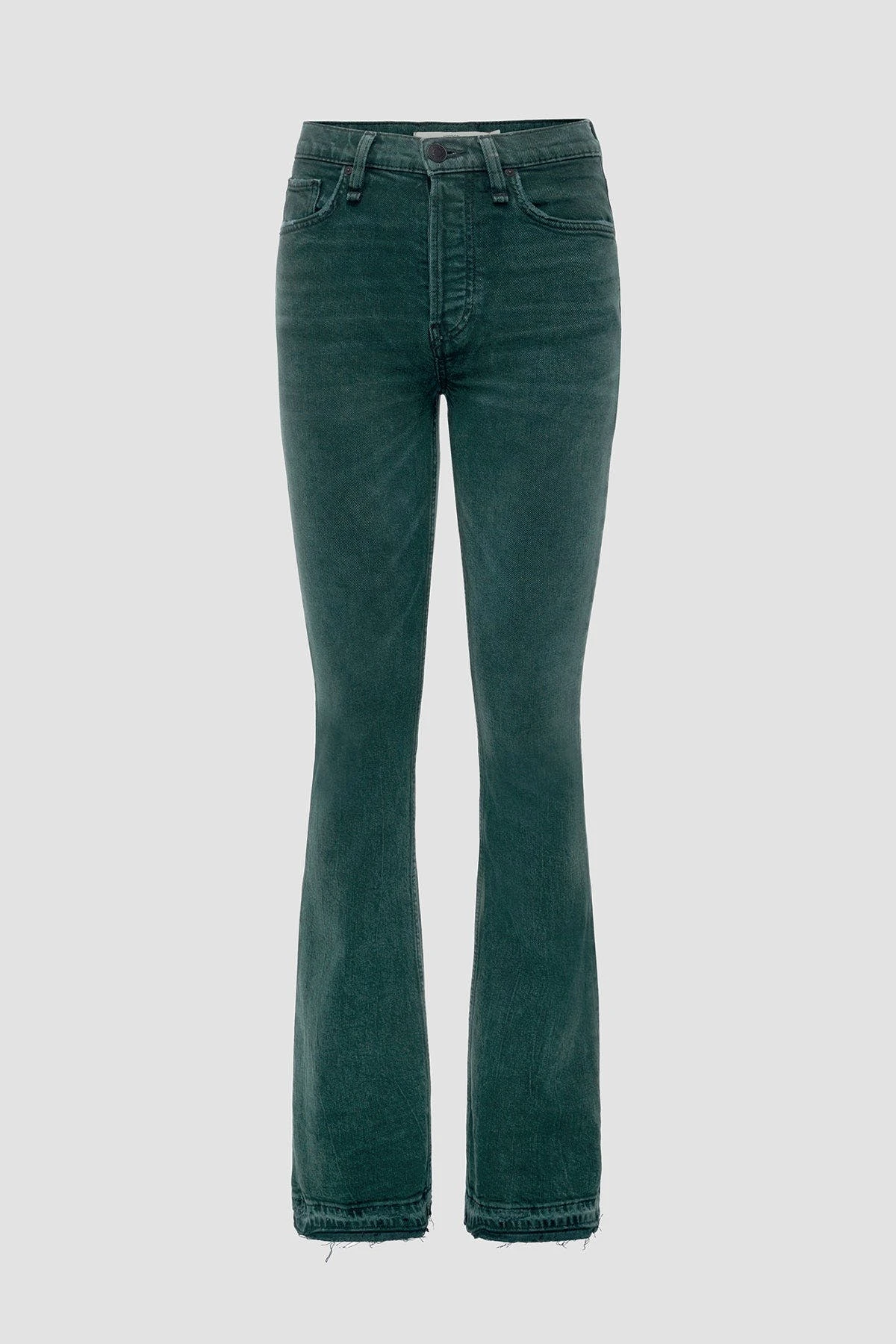 Their Faye Ultra High-Rise Bootcut Jean in Overdye Scarab is cut from premium comfort stretch denim with a holds-you-in waistline and fitted leg that breaks at the knee.