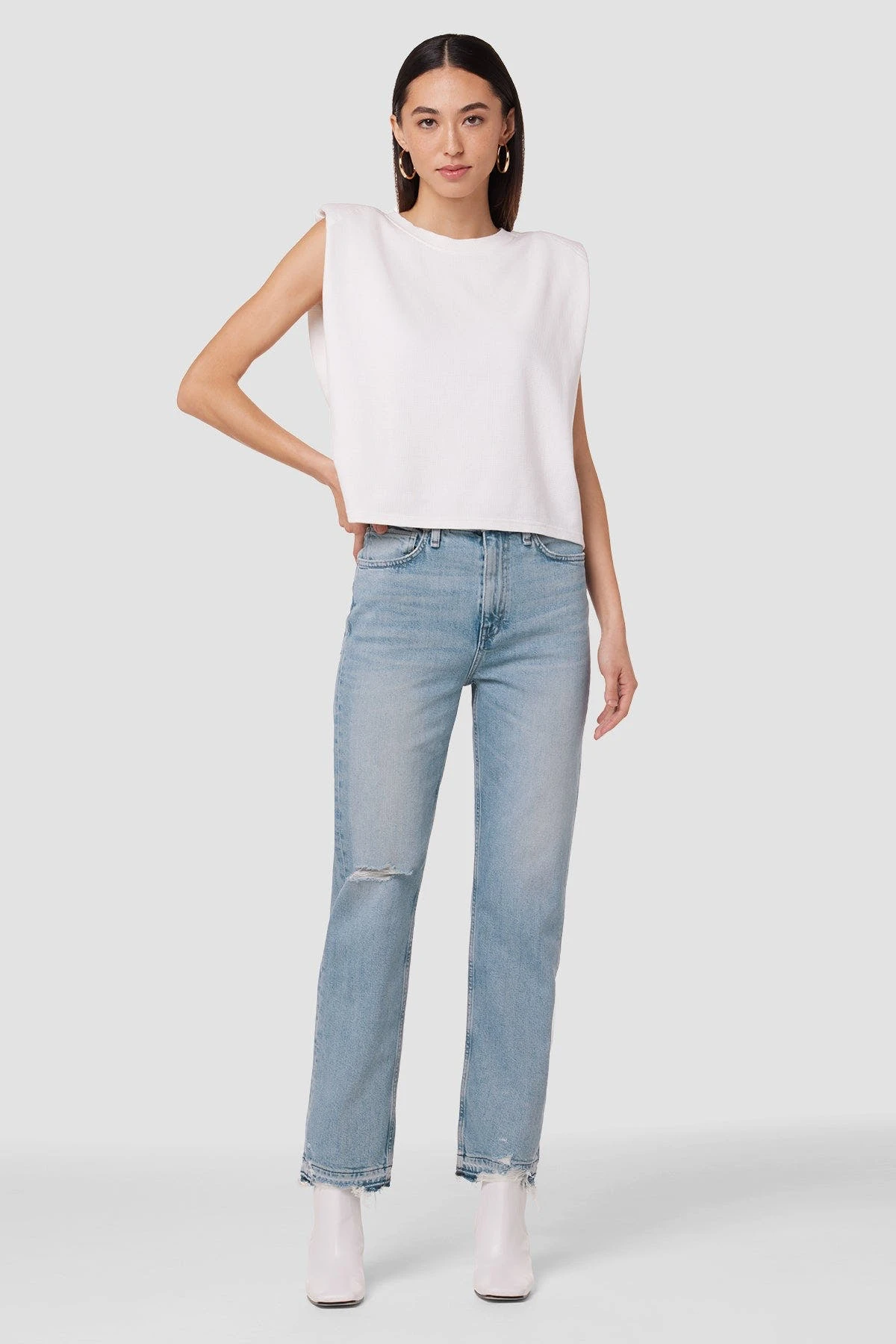 This Jade High-Rise Straight Leg Jean in Harmonic is cut with a loose, ’90s-inspired fit from premium denim with a hint of stretch for extra comfort.
