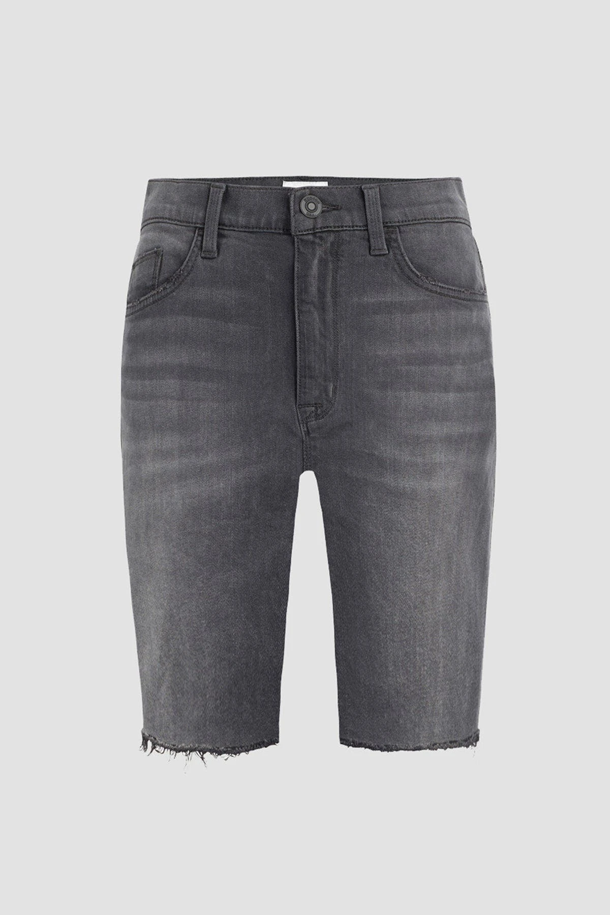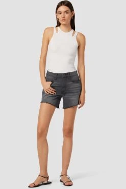 This kass high-rise boyfriend short in zina features a flattering high rise, long inseam, and casual cutoff hem. Finished with the signature back flap pockets.