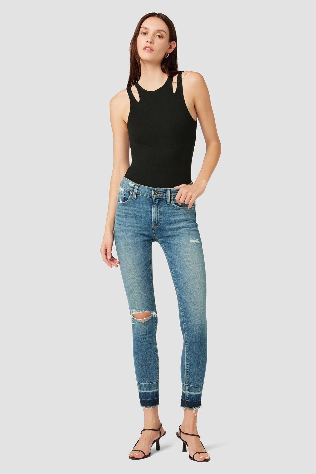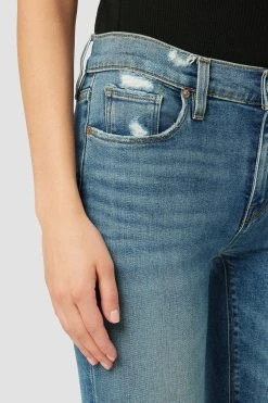 Cropped for the ideal ankle length, our nico mid-rise super skinny ankle jean in medium indigo roses is crafted from premium stretch denim with expert fading, destruction, and a raw hem. holds-you-in fit. slim at the ankle. Sits at the natural waist.