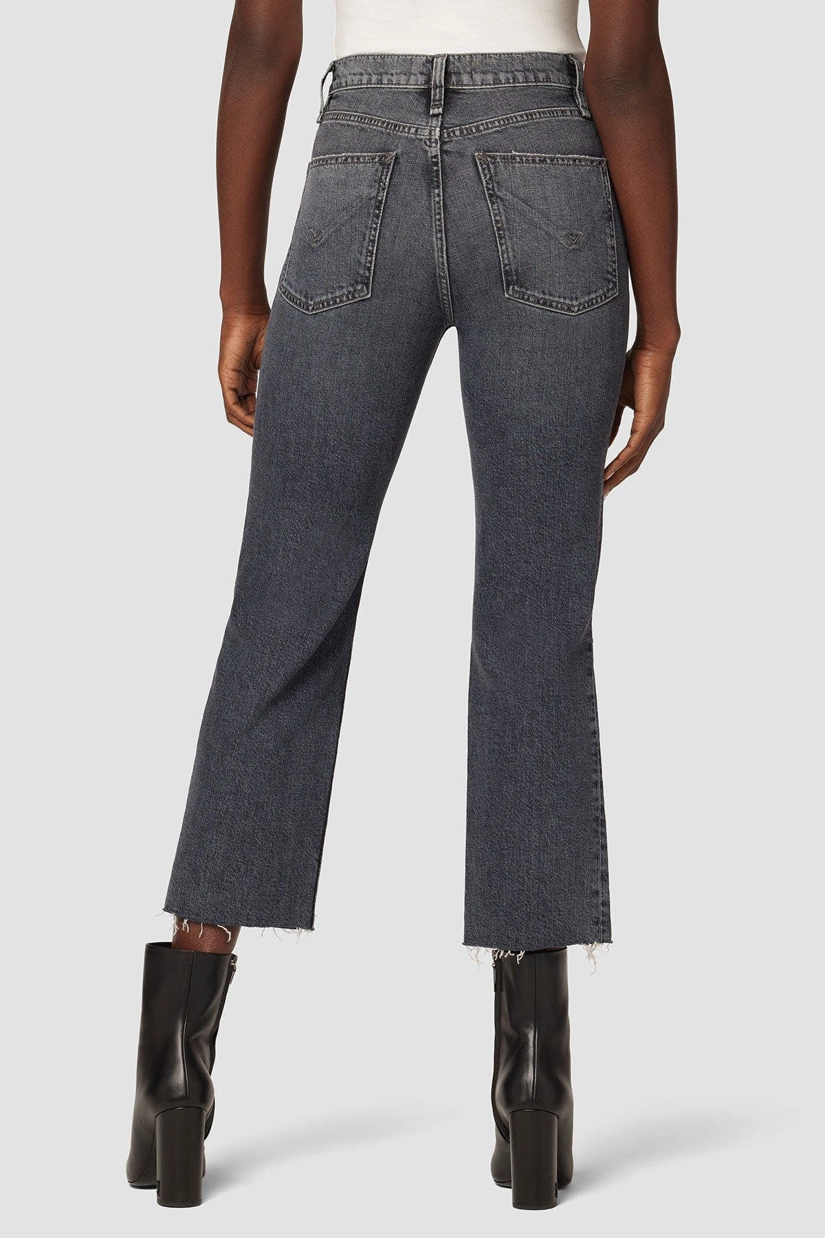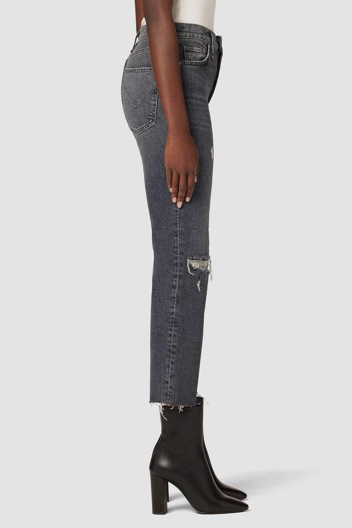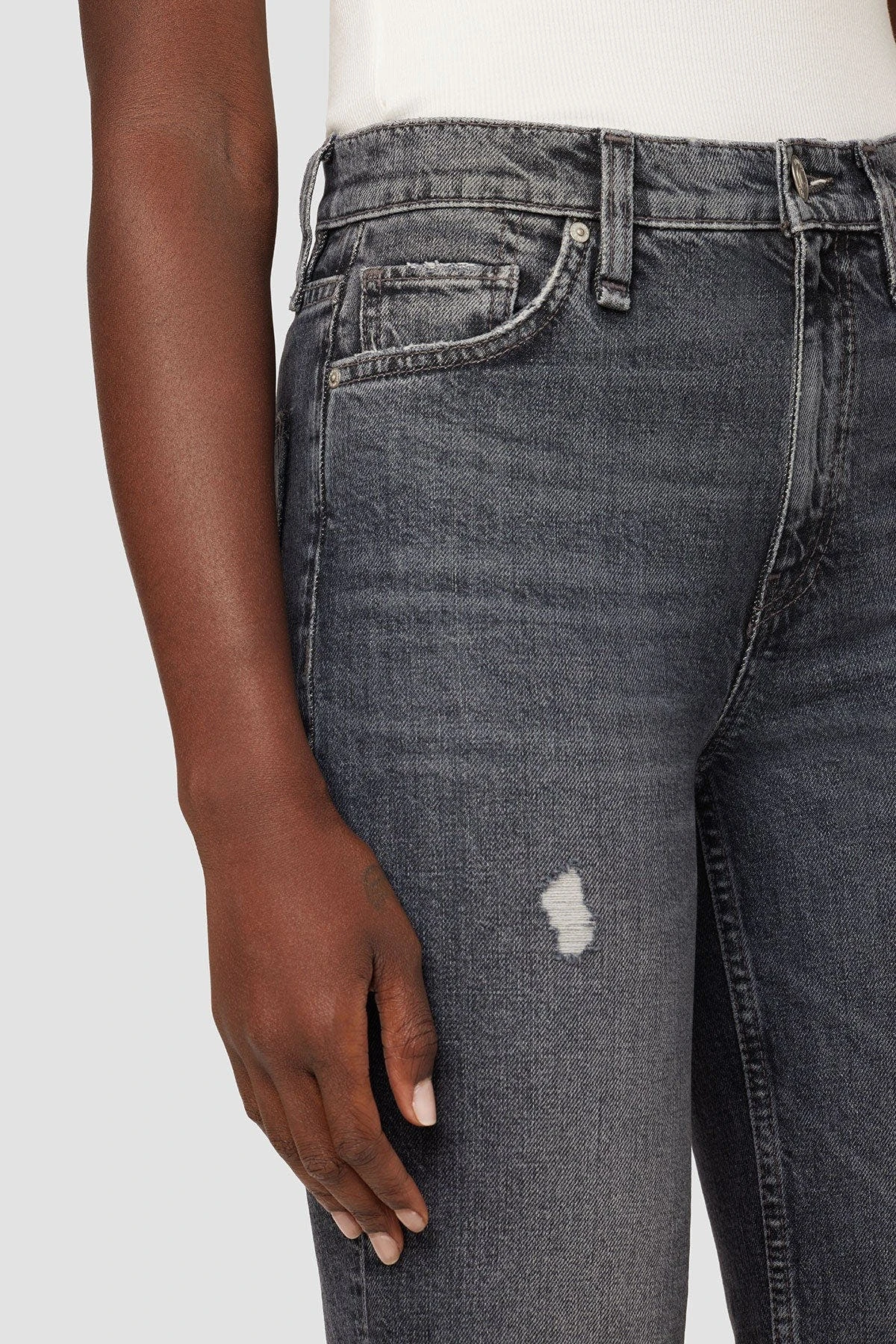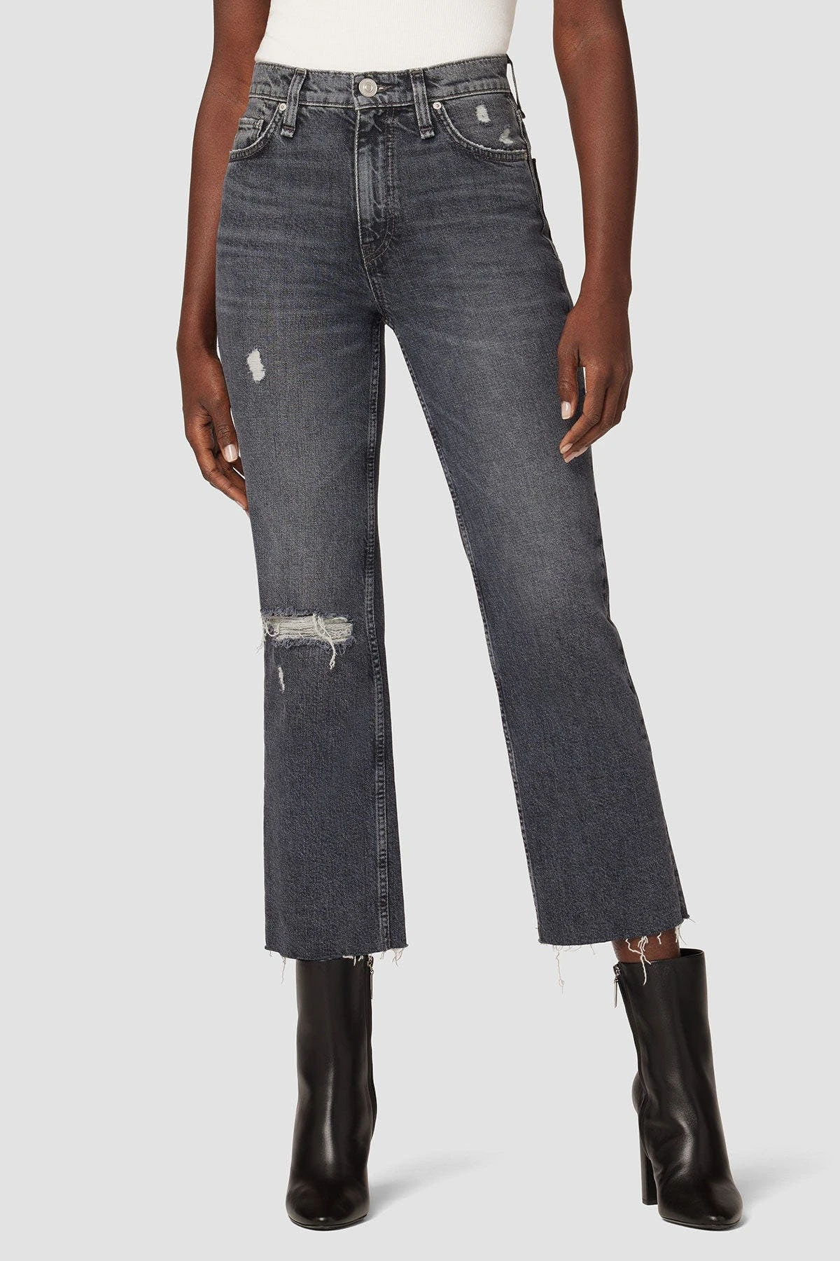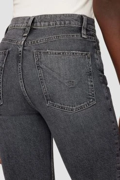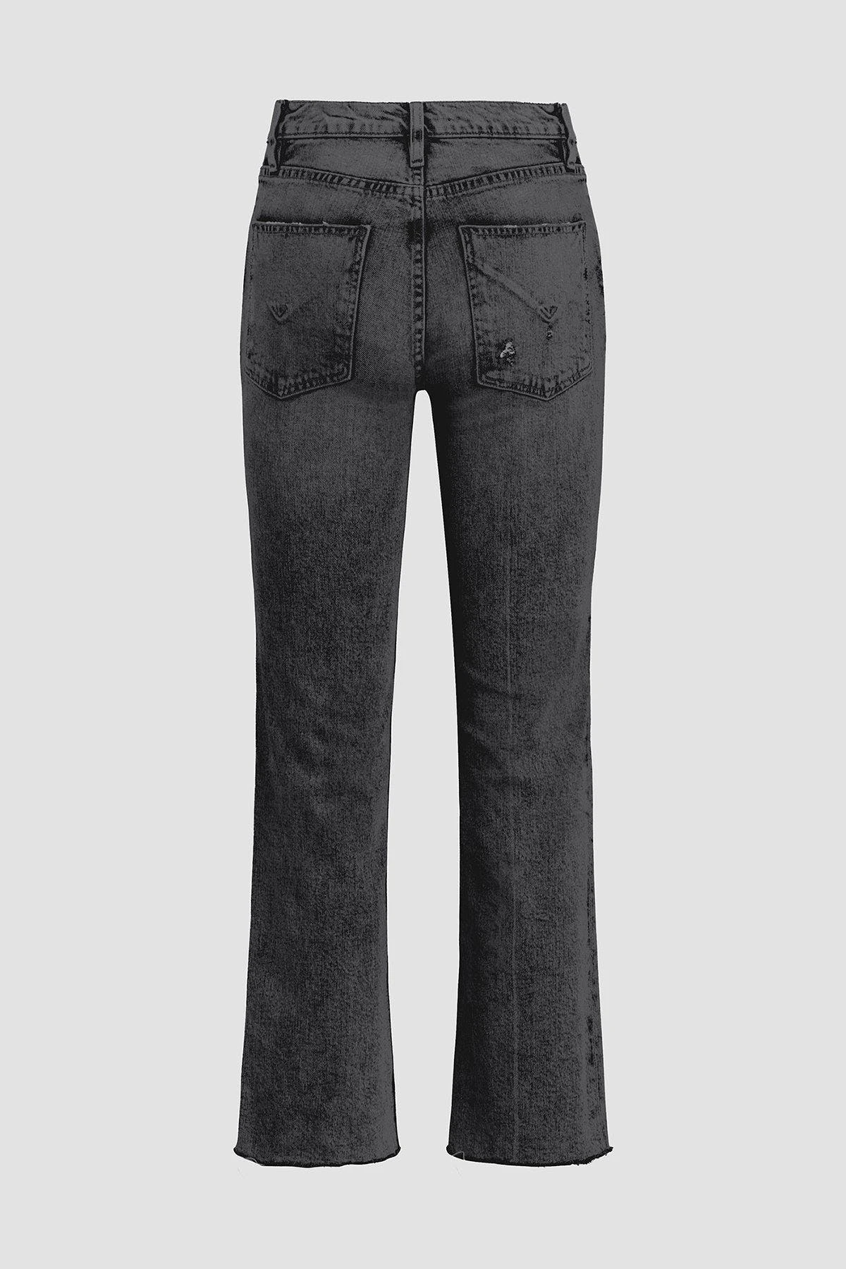 Like a ridiculously good vintage find, our remi high-rise straight crop jean is cut with a flattering high rise and cropped relaxed leg. the vintage black cosmos wash is made from premium comfort stretch denim with destruction, raw hems, and classic five-pocket details.