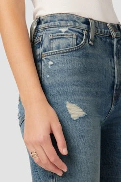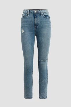Their Harlow Ultra High-Rise Cigarette Ankle Jean in Nebula is cut with a slim, cropped silhouette from premium comfort stretch denim made from organic cotton, finished with subtle fading and vintage-feel destruction. It’s part of their growing range of lower impact fits made with eco-friendly materials, including GOTS-certified organic cotton, GRS-certified recycled elastane, and SCS-certified recycled polyester.