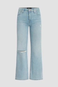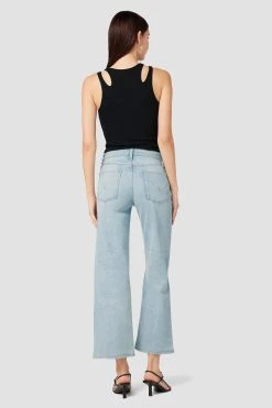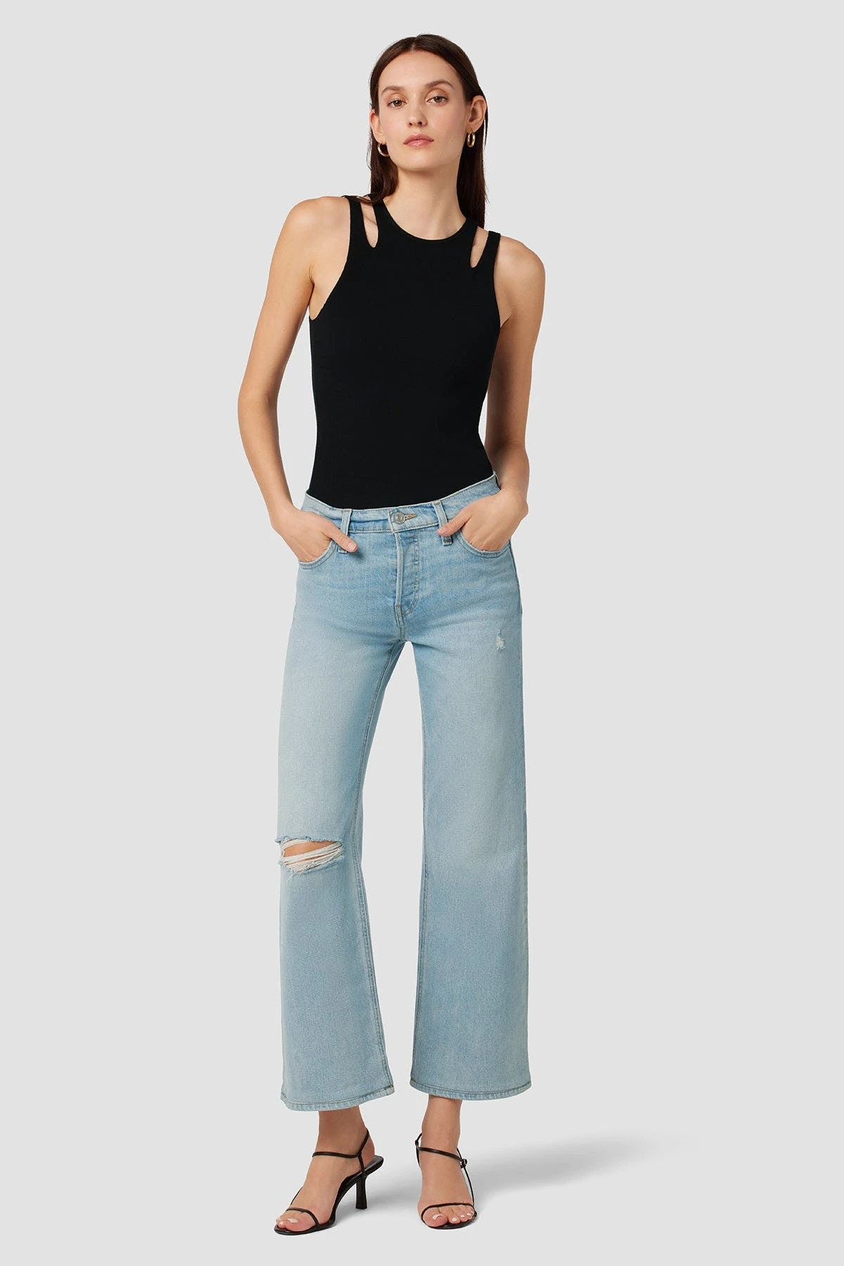Re-up with our rosie high-rise wide leg ankle jean, cut with an elevated waistline and ’70s-feel roomy leg from premium comfort stretch denim. The light indigo memory wash is cropped, destructed, and faded to perfection, adding even more vintage appeal.
