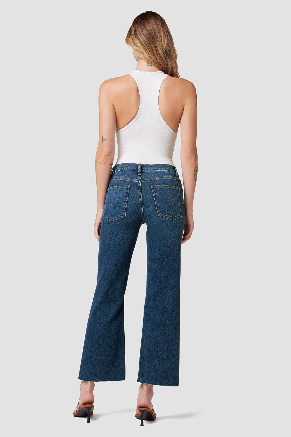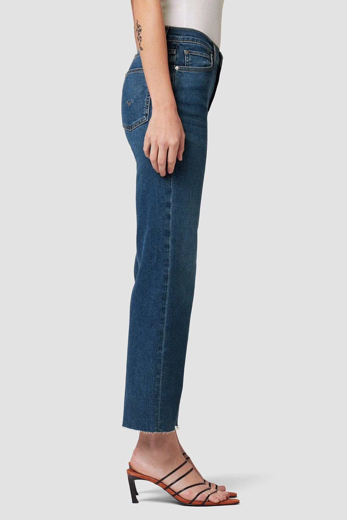 Re-up with our Rosie High-Rise Wide Leg Jean, cut with an elevated waistline and ’70s-inspired roomy leg from premium stretch denim. The medium indigo Spades wash is distressed and faded to perfection, adding even more vintage appeal.