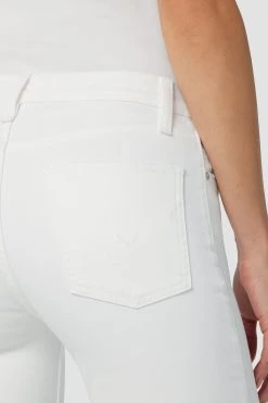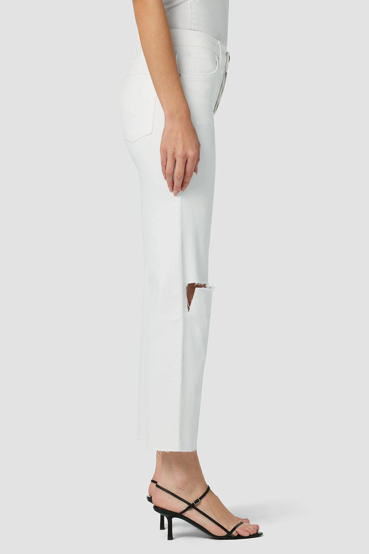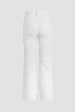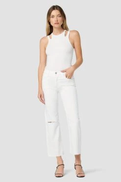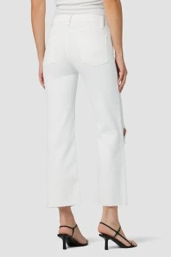 Re-up with our rosie high-rise wide leg crop jean, cut with an elevated waistline and cropped, roomy leg from premium comfort stretch denim in the expertly destructed white wash.