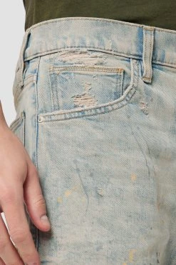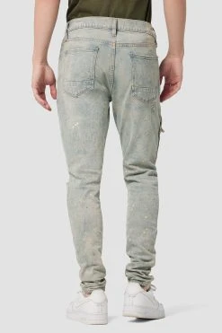 For a snug fit, look no further than our zack side zip skinny jean. Mid-rise, slim through the hip and thigh with a narrow leg opening. The specially treated stripped paint wash is cut from premium comfort stretch denim with destruction and side zip pockets.