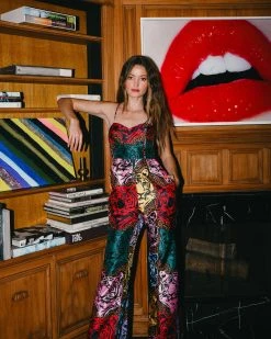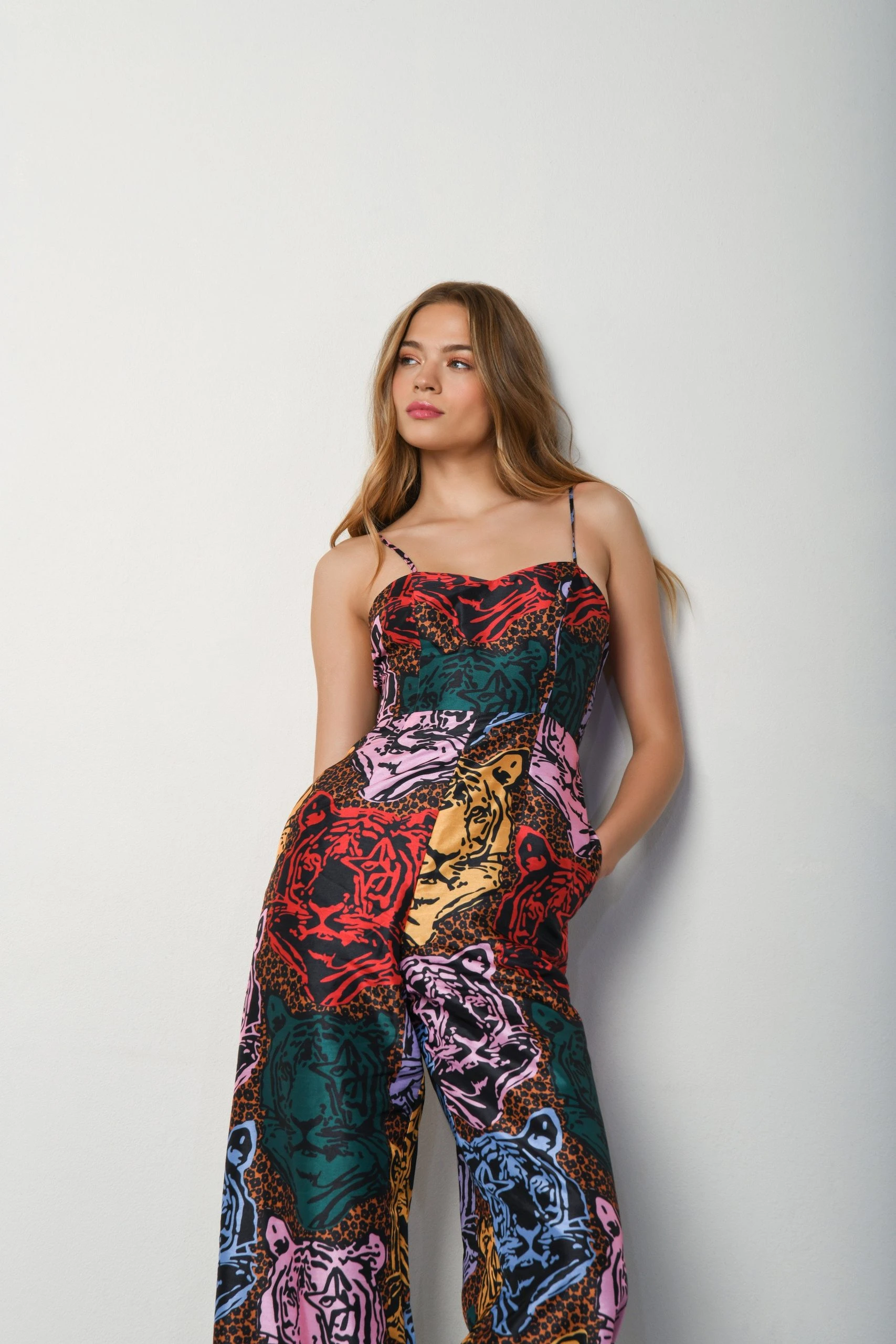 – Shine shantung wide leg jumpsuit- Adjustable straps- Pockets- Center back zipper- 58″ from HPS