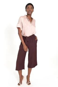 LAZZARO wide leg palazzo pant was designed to look stylish in the summer and fall. For ease and comfort, they added elastic to the front of the pant only, leaving your bum to look the way it should while not adding volume. For style, they added a wrap belt to conceal the waistband. Two front pockets and two back patch pockets make these user friendly. Trust us, this is the pant you will always reach for.