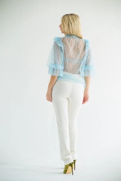 Exude style, edge and comfort in this smooth neoprene pant. With a higher waist fit, this pant hugs your hips and eases into a straight leg at the hem for a more modern look. The body is made of an upcycled neoprene with stretch that is substantial enough to cinch you in. Style lines were added for a slimming look. Pair with the Billy Jean, the Parker top and/or the matching Maxine star jacket.