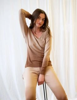 The womenâs beige ombre tie dye cotton pajamas will bring the best comfort for every wearer while bolstering the matching fun with the rest of the family. These outfits have a two-piece set consisting of a long-sleeved shirt with comfy bottoms, and both have ribbed cuffs to bolster the feel. The beige ombre design is specially dyed by hand to provide wearers with a stylish and unique look. With ribbed cuffs and tagless labels implemented as well, the overall fit is unlike any other. Sizes come in x-small to x-large, consider choosing a size larger for an even looser feel. Any special event will be perfect to match the family together, and the womenâs beige ombre tie dye cotton pajamas are a great addition!