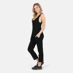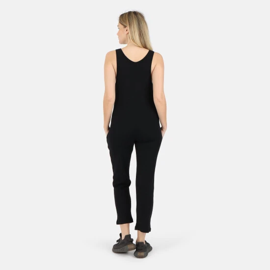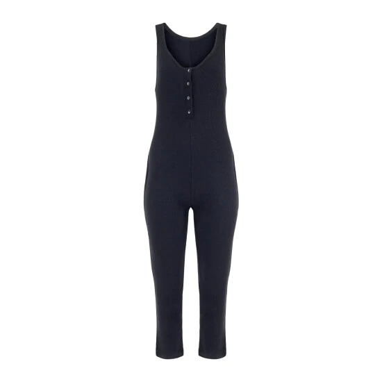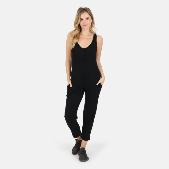 Lezat Costa Organic Cotton Waffle Thermal Pocketed Jumpsuit Jumpsuits & Rompers Black